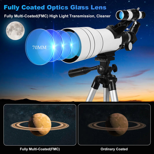SUNOYAR Telescope, 70mm Telescopes for Adults & Kids, 300mm Refractor Telescope (15X-150X) with Adjustable Tripod for Astronomy Beginners, Gift for Kids