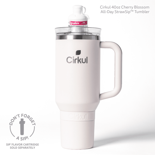 Cirkul 40oz All-Day StrawSip Double-Wall Insulated Stainless Steel Tumbler with Handle, Cherry Blossom (Light Pink)