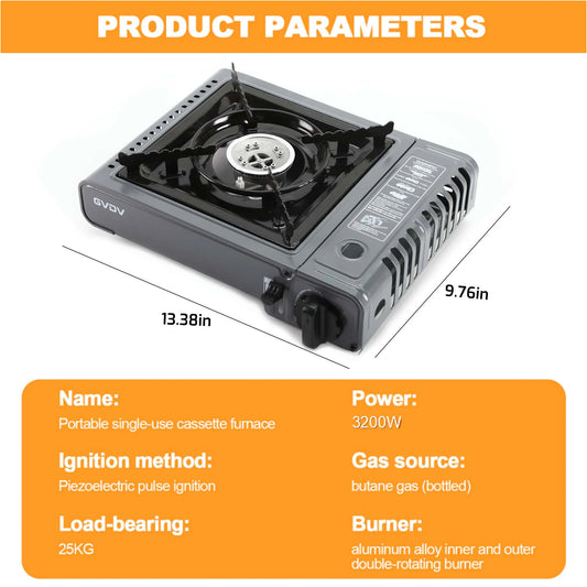 GVDV Portable Camping Stove, 1 Burner Butane Gas Stove with Carrying Case