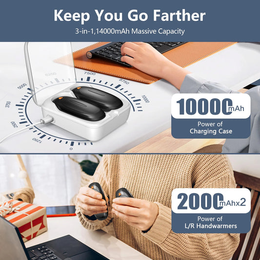 Rechargeable Hand Warmers with Charge Case, 2 Packs 14,000mAh Electric Dual Sided Hand Warmer, Reusable Electric Pocket Heater for Hunting, Portable Heater Gifts for Christmas,Outdoor,Camping