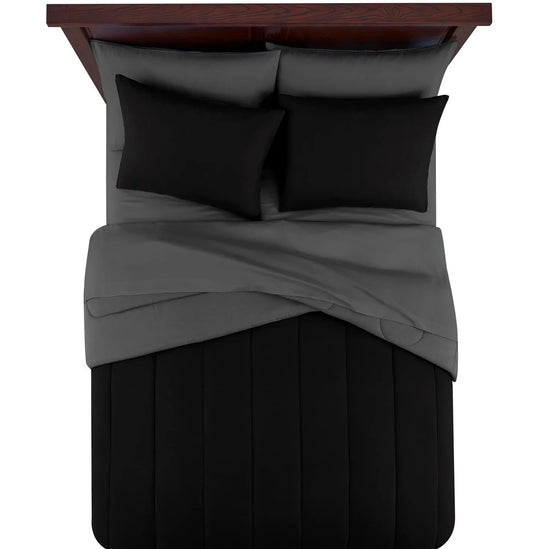Mainstays 7 Piece Reversible Bed in a Bag Comforter Set with Sheets, Black, Queen