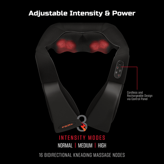 FitRx Cordless Shiatsu Shoulder, Back, and Neck Massager with Heat, USB-Rechargeable, Black