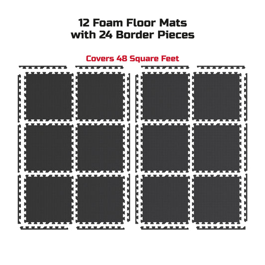 FitRx Pro Mat Exercise Mat, 12-Pack Puzzle Mat Foam Floor Tiles for Home Gym EVA Foam Mat, 1/2 in., 48 sq. ft., 7lbs Total