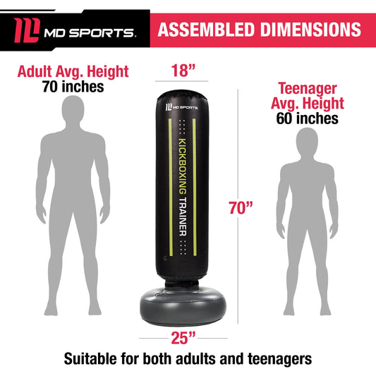 70" Inflatable Kickboxing Trainer, 6 Interactive Targets, Black/Yellow, by MD Sports