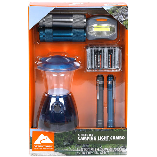 Ozark Trail 6-Piece LED Flashlight Headlamp Lantern Penlight Combo, Model 4937, 1.36 lb