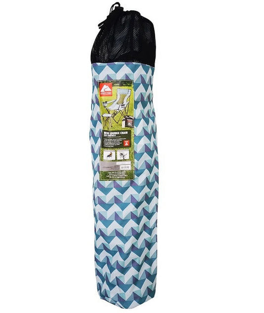 Ozark Trail Lounge Camp Chair,Detached Footrest,Blue and White Design,Padded Headrest,Adult,10.56lbs