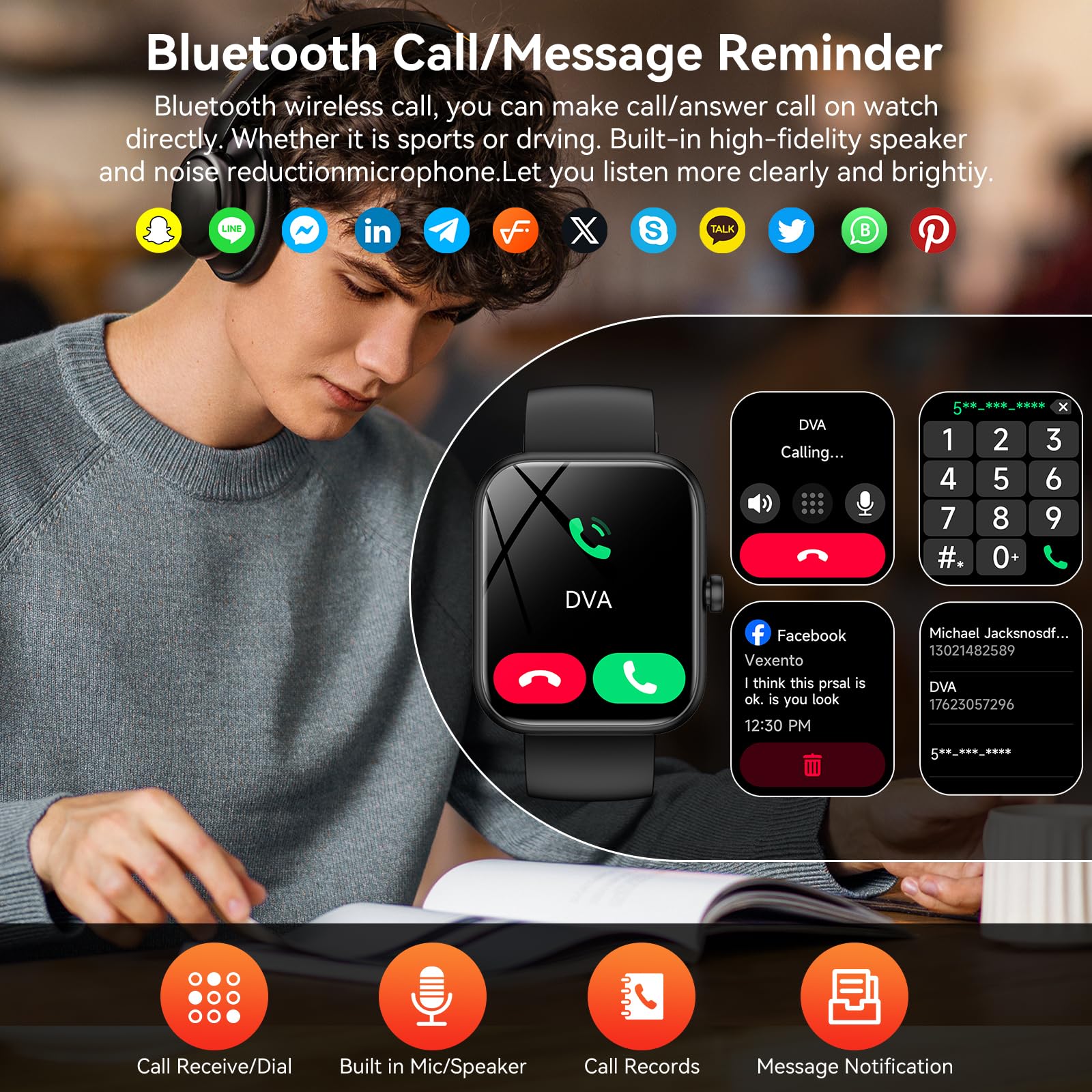 ‌Smart Watch with Alexa Built-in, 1.83" HD Touchscreen, Bluetooth Calling, Fitness Tracker, Running Coach, Sleep Coaching, 120+ Sport Modes, IP68 Waterproof, Heart Rate for iPhone Android (Black)