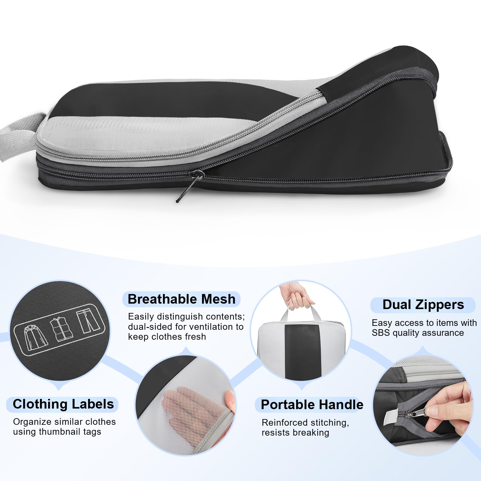 10 Set Compression Packing Cubes for Travel Essentials,Compressible Expandable Packing Cubes for Suitcase,OlarHike Luggage Organizer Bags for Travel,Handy Helper for Organizing Clothes(Black)