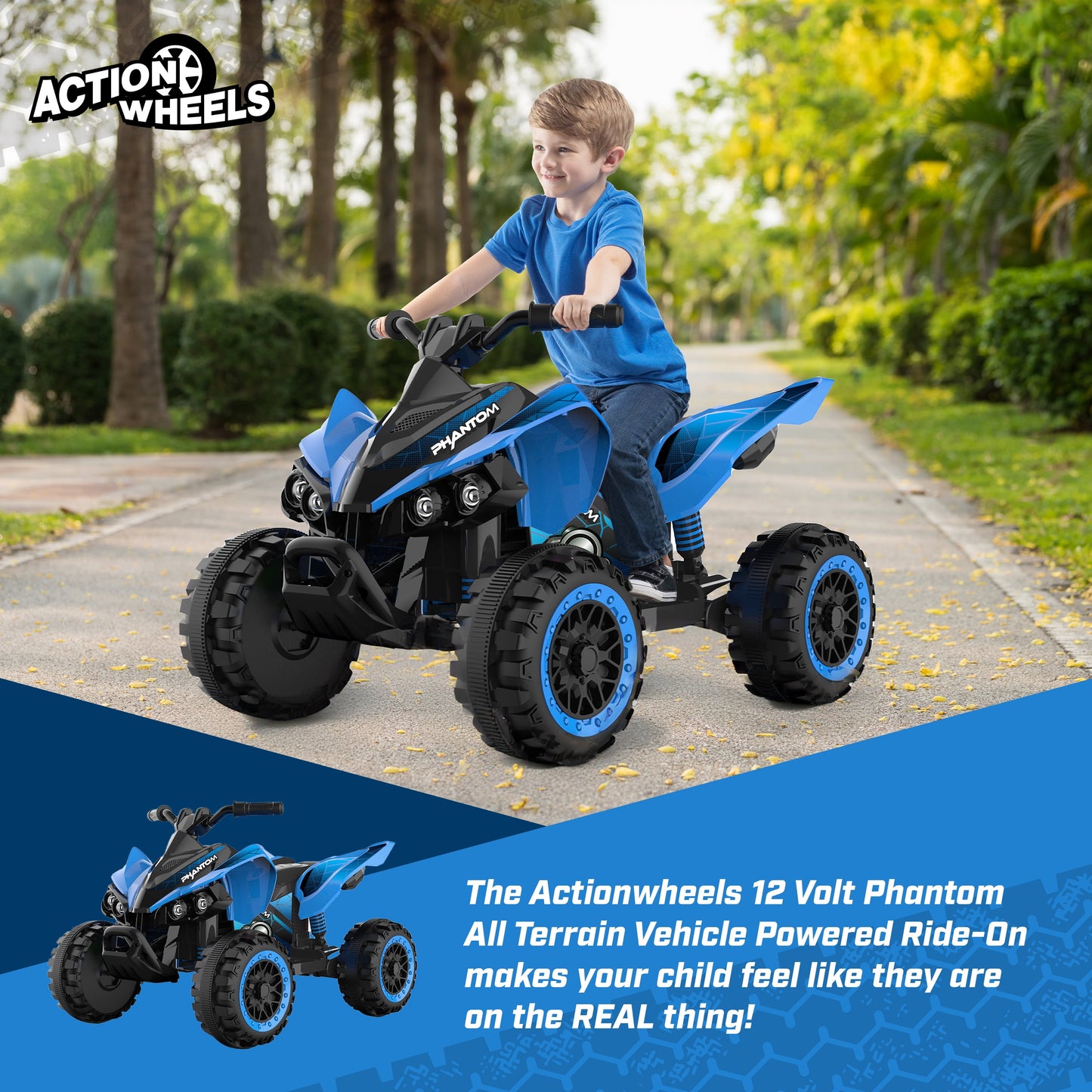 12 Volt Blue Phantom ATV Action Wheels Branded Battery Powered Rideon for Boys and Girls Ages 2 to 4 Years Old