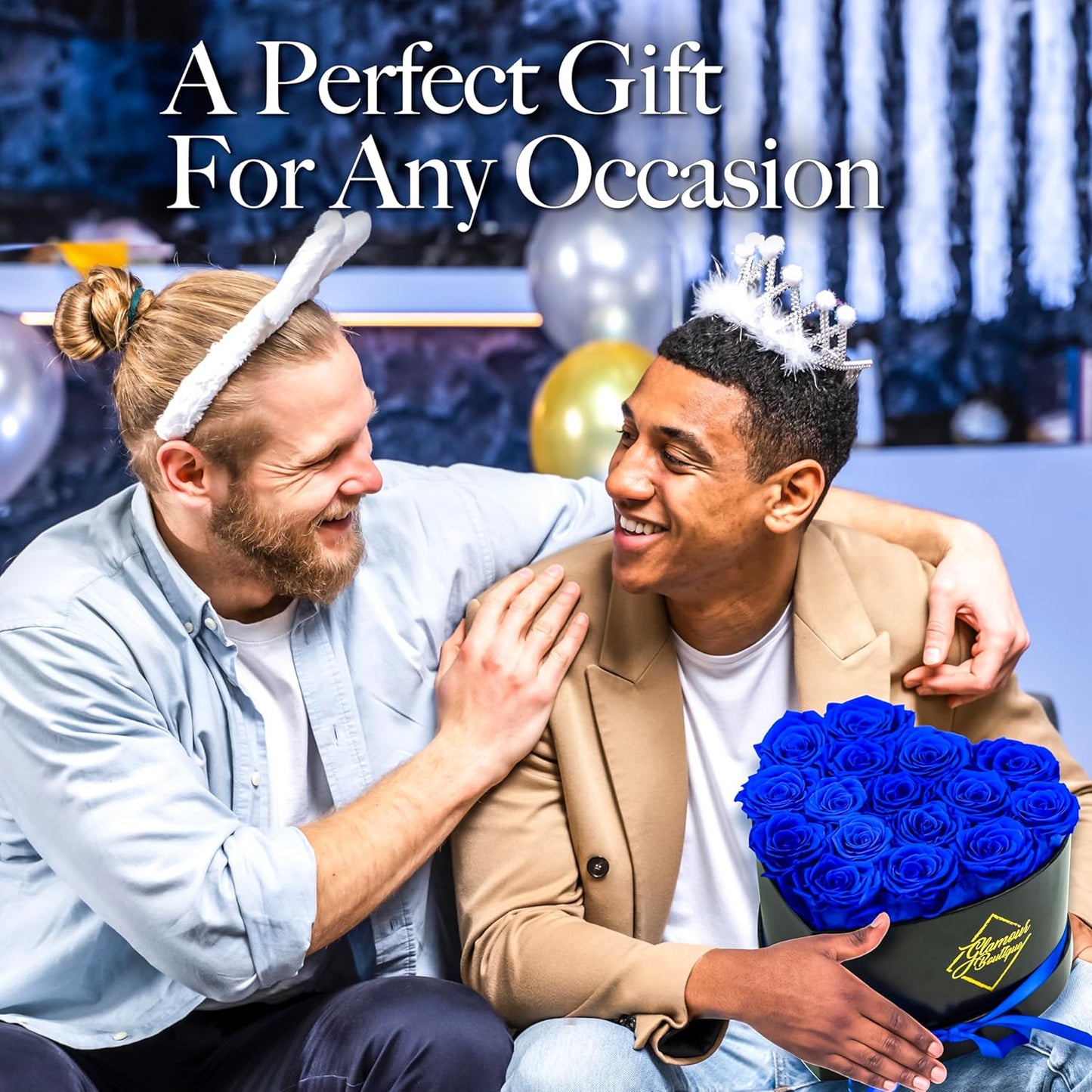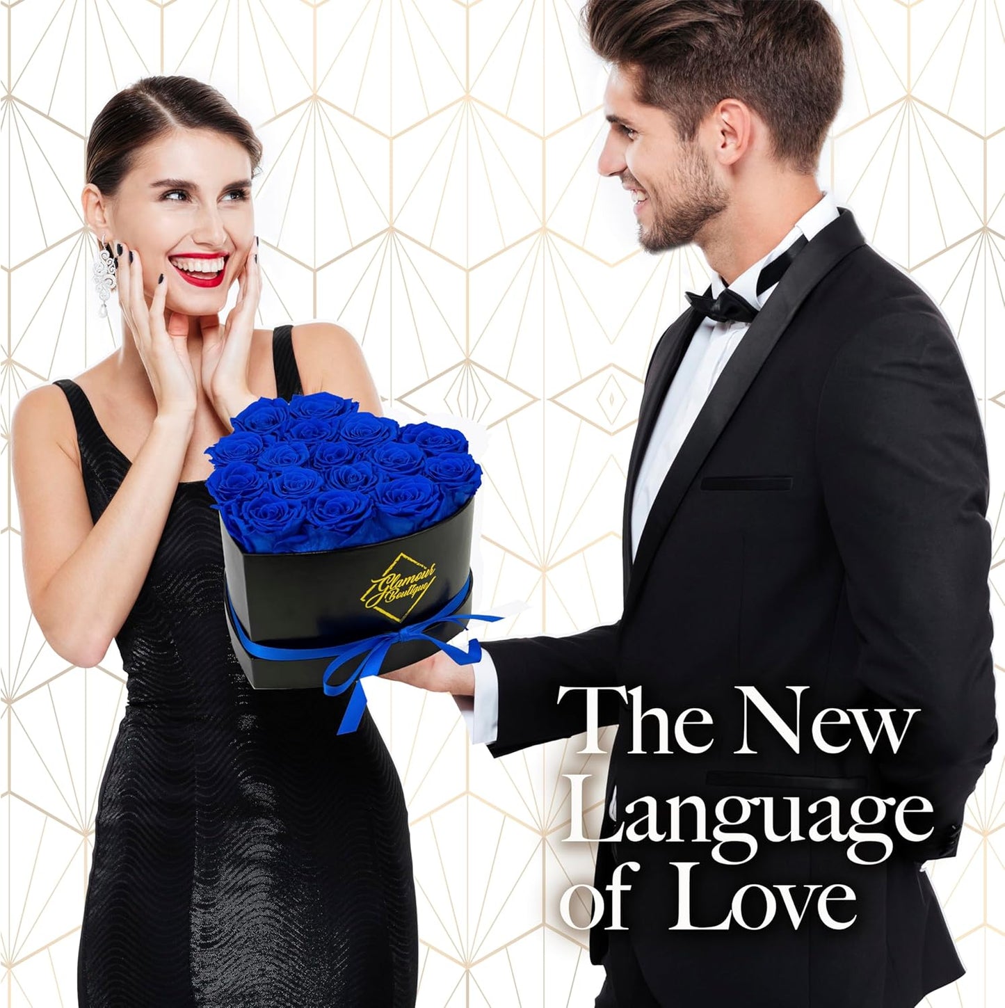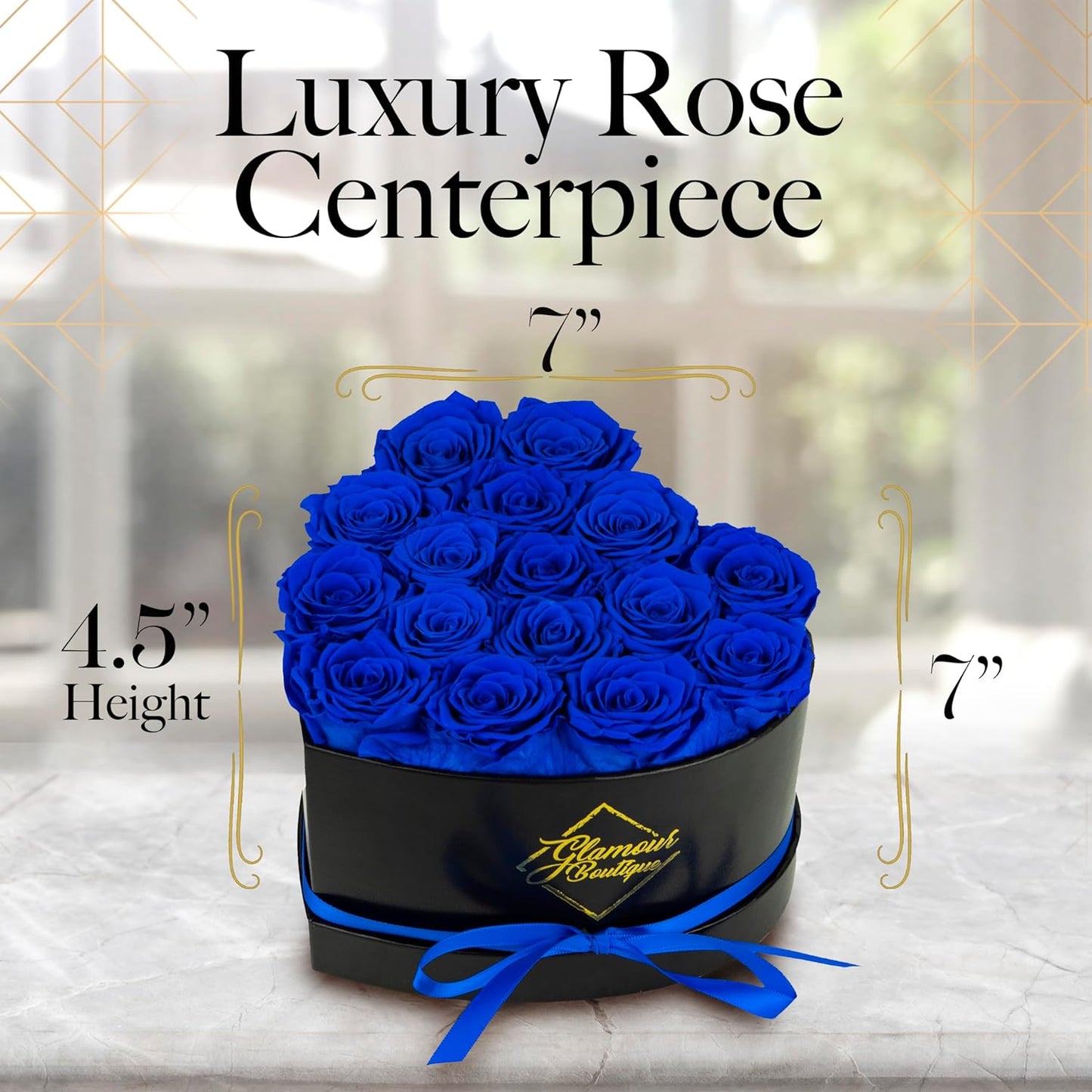 16-Piece Flowers Forever Heart Shape Box - Preserved Roses, Immortal Roses That Last A Year - Rose Eternal Preserved Flowers for Delivery Prime Mothers Day & Valentines Day - Blue