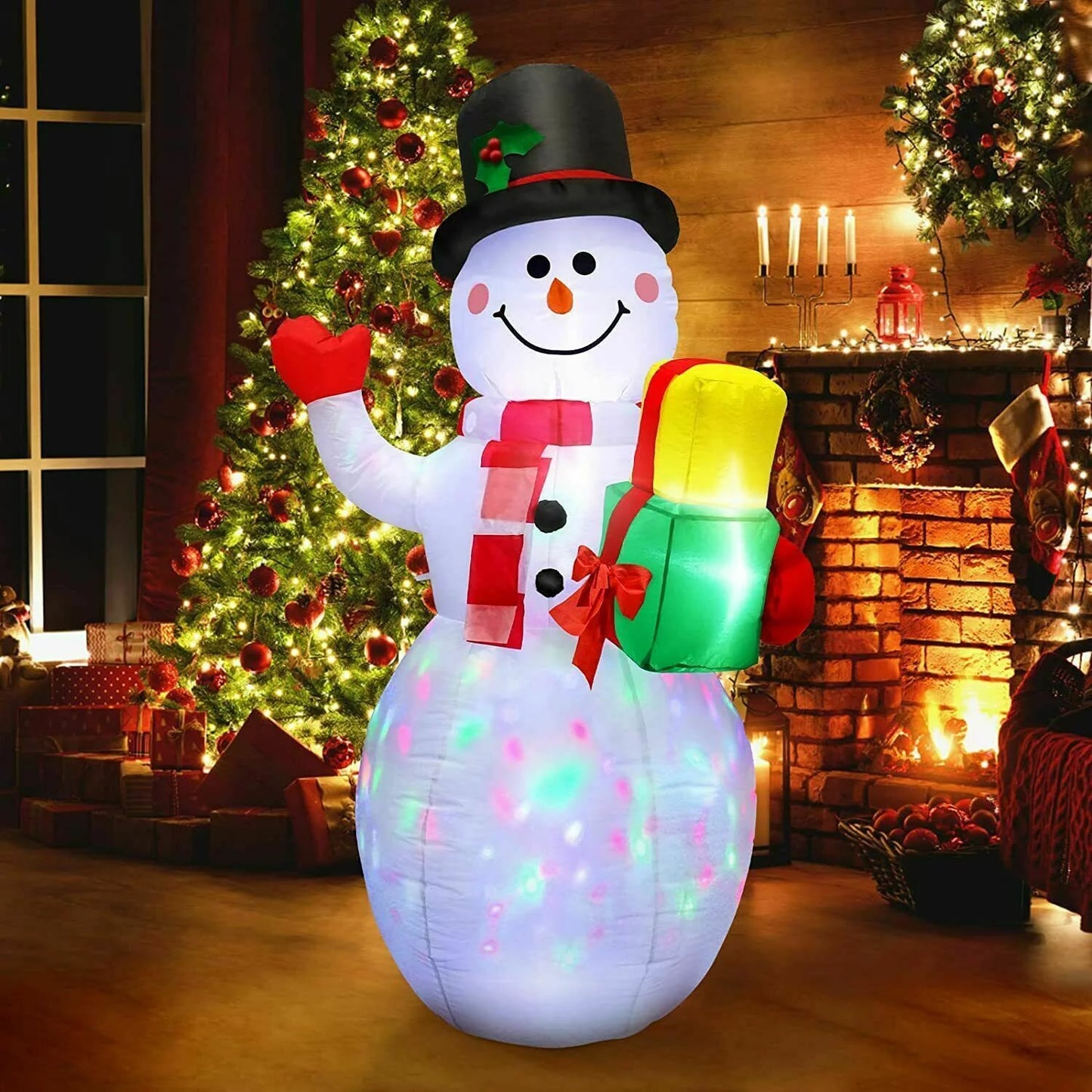 5ft Christmas Inflatables Snowman Outdoor Yard Decor with Rotating LED Lights Christmas Blow Up Decoration Garden