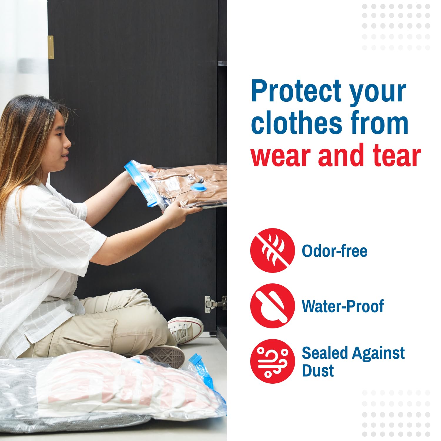 6 Pack Large Vacuum Storage Bags for Comforters, Blankets & Clothes – Vacuum Sealed Compression Bags with Hand Pump – Space Saver Storage Bags for Bedding, Moving, Travel & Organization