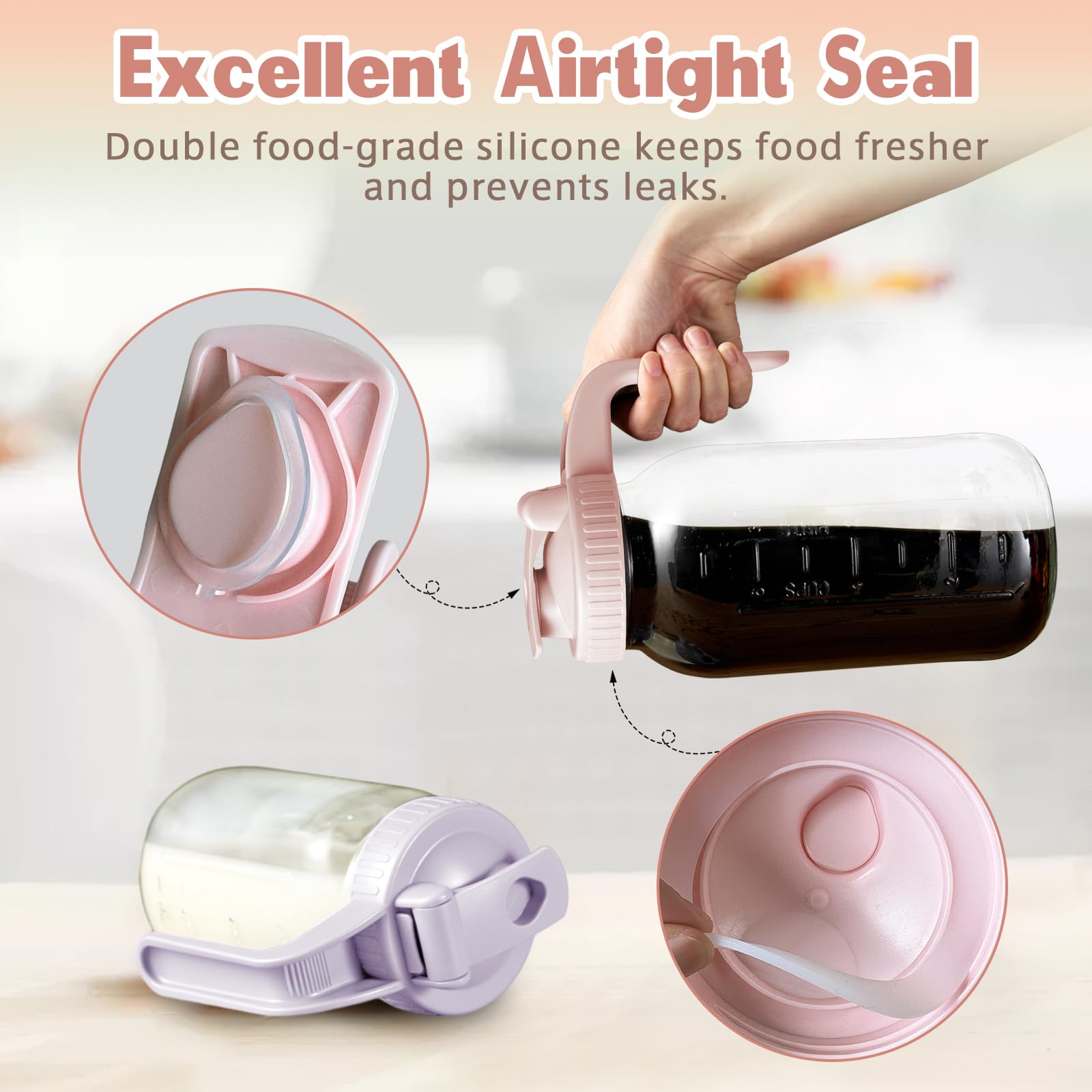 64oz Glass Pitcher with Lid & V-shaped Pour Spout - 2 Quart Breastmilk Pitcher Double Leak Proof, Creamer Container for Sun Tea, Juice, Cold Brew Coffee, Breastmilk Storage Containe