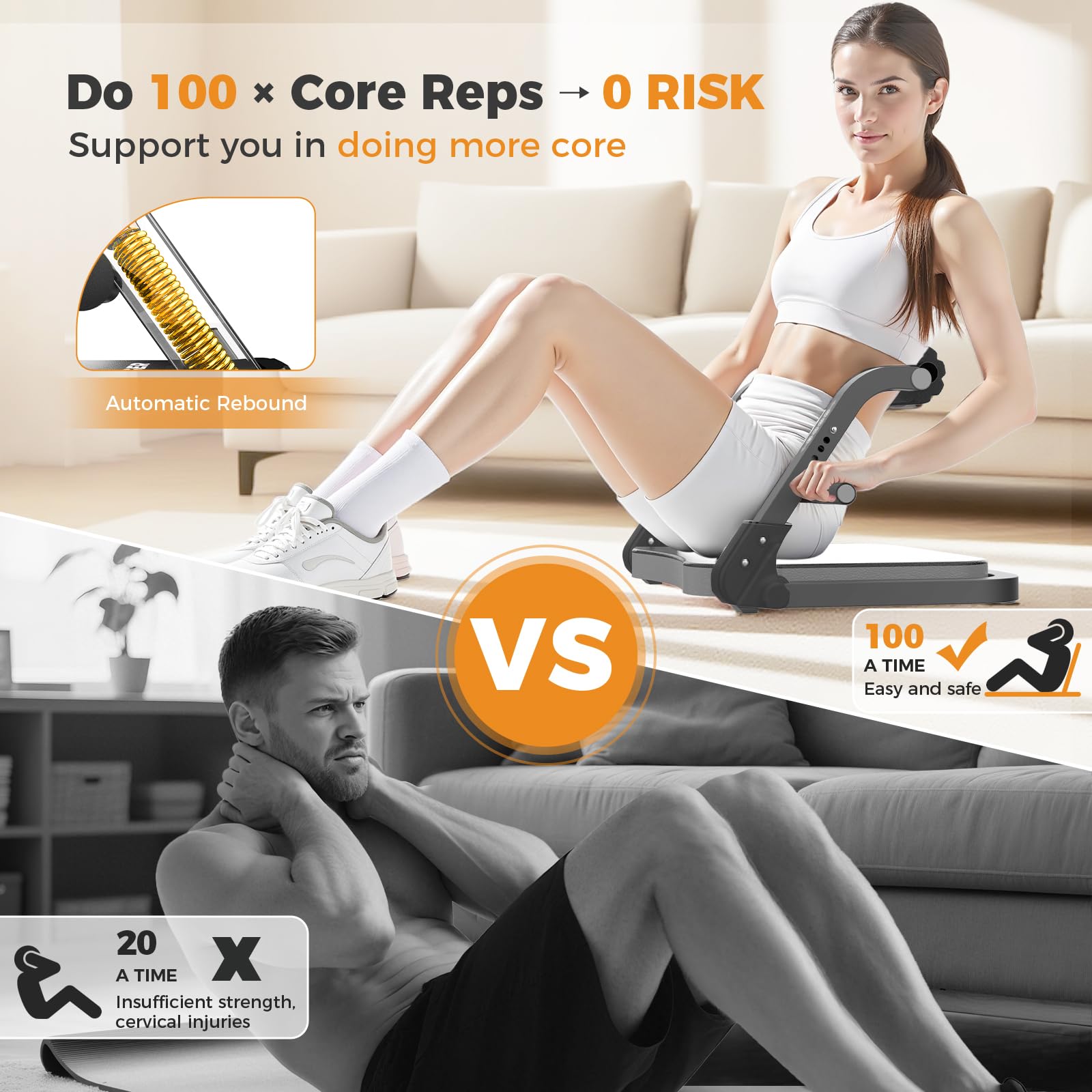 Ab Machine,Sit Up Exercise Equipment& Core Machine, Workout Equipment,Adjustable Ab Trainer with 3 Resistance Levels and Removable Auxiliary Handle,Home Gym Fitness Equipment for All Ages Grey