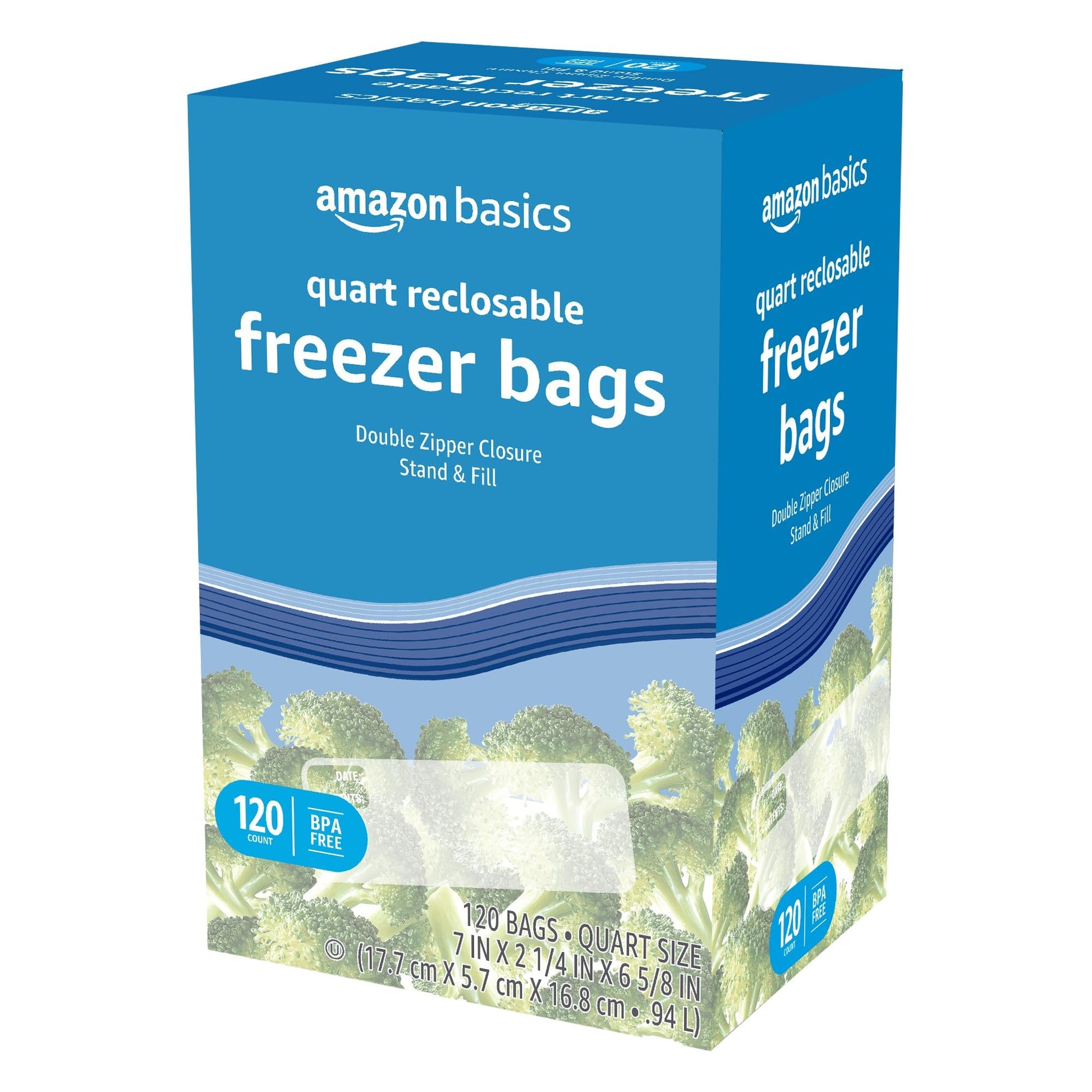 Amazon Basics Reclosable Freezer Quart Bags, BPA Free, 120 Count (Previously Solimo)