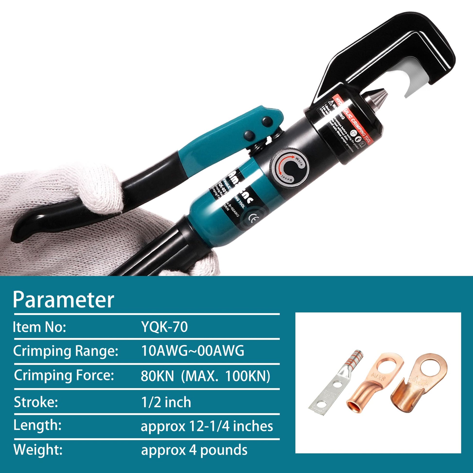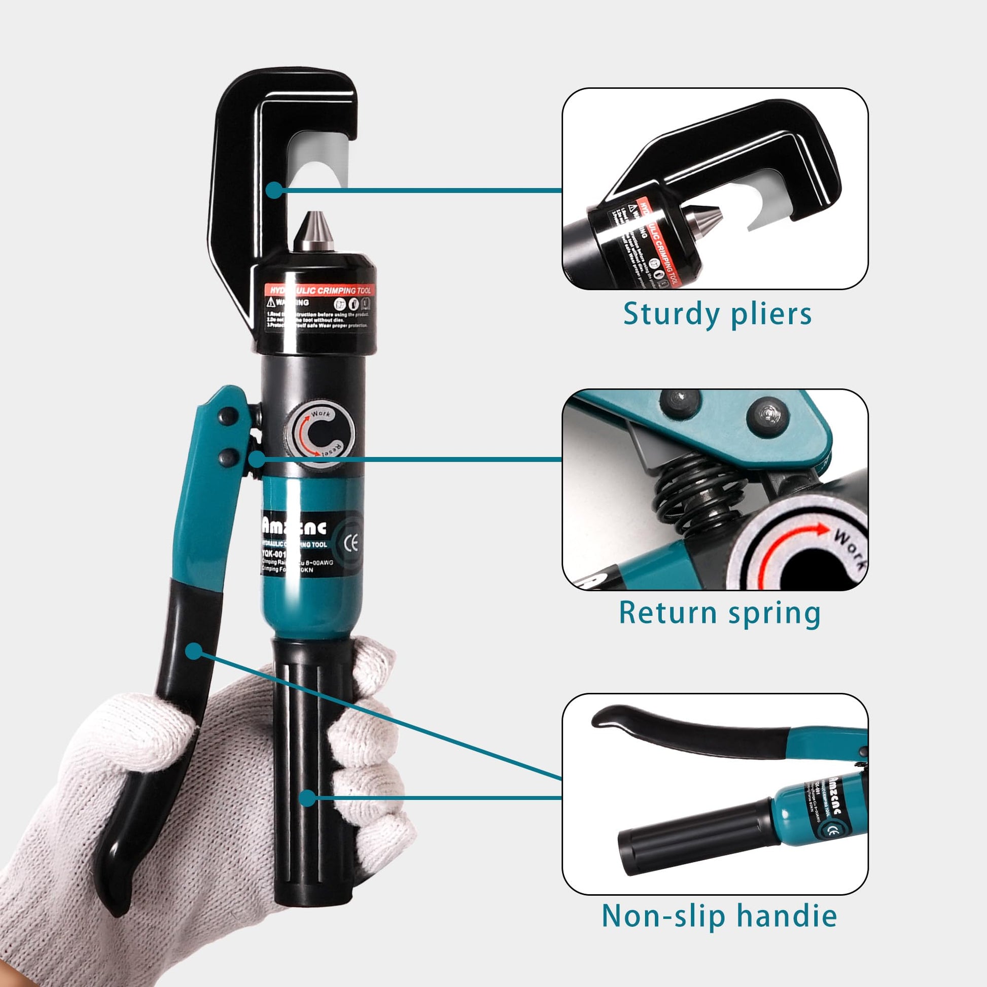 AMZCNC Point Press Hydraulic Crimping Tool, Dies-Less Cable Crimper for 8 AWG – 3/0 AWG, One-Hand Operation, Faster Than Die-Type Crimpers