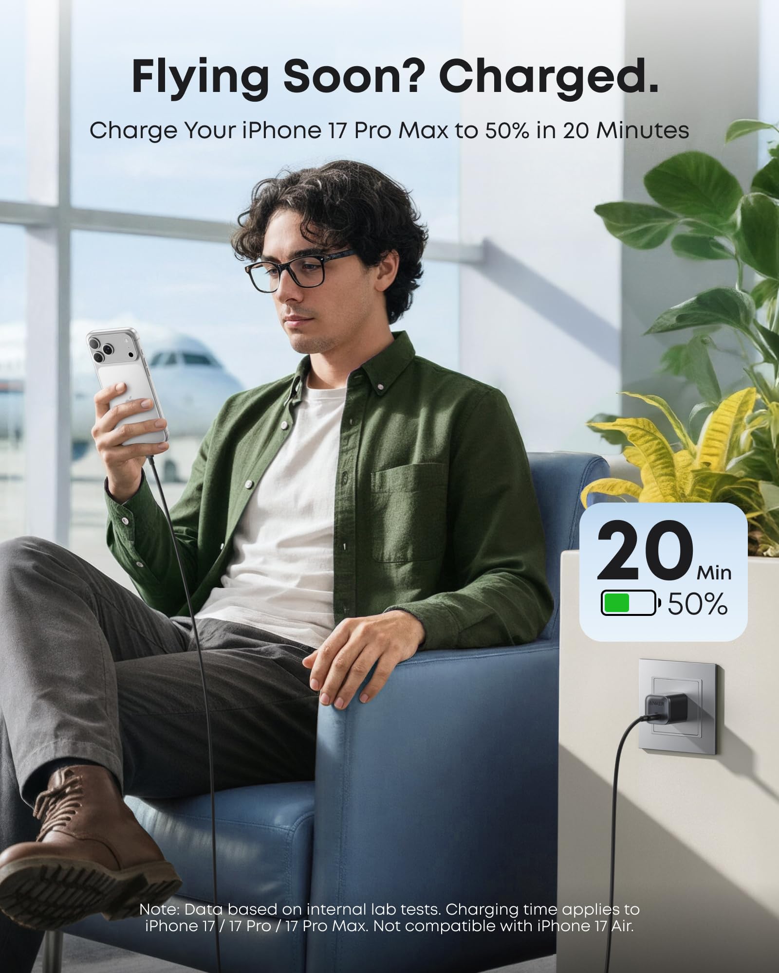Anker Nano 45W Type C Charger Fast Charging, Compact and Foldable Plug USB C Charger Block for iPhone 17/16 Series, MacBook, Pixel 9, iPad, Samsung Galaxy S25 Ultra / S24 Series (6 ft Cable Included)