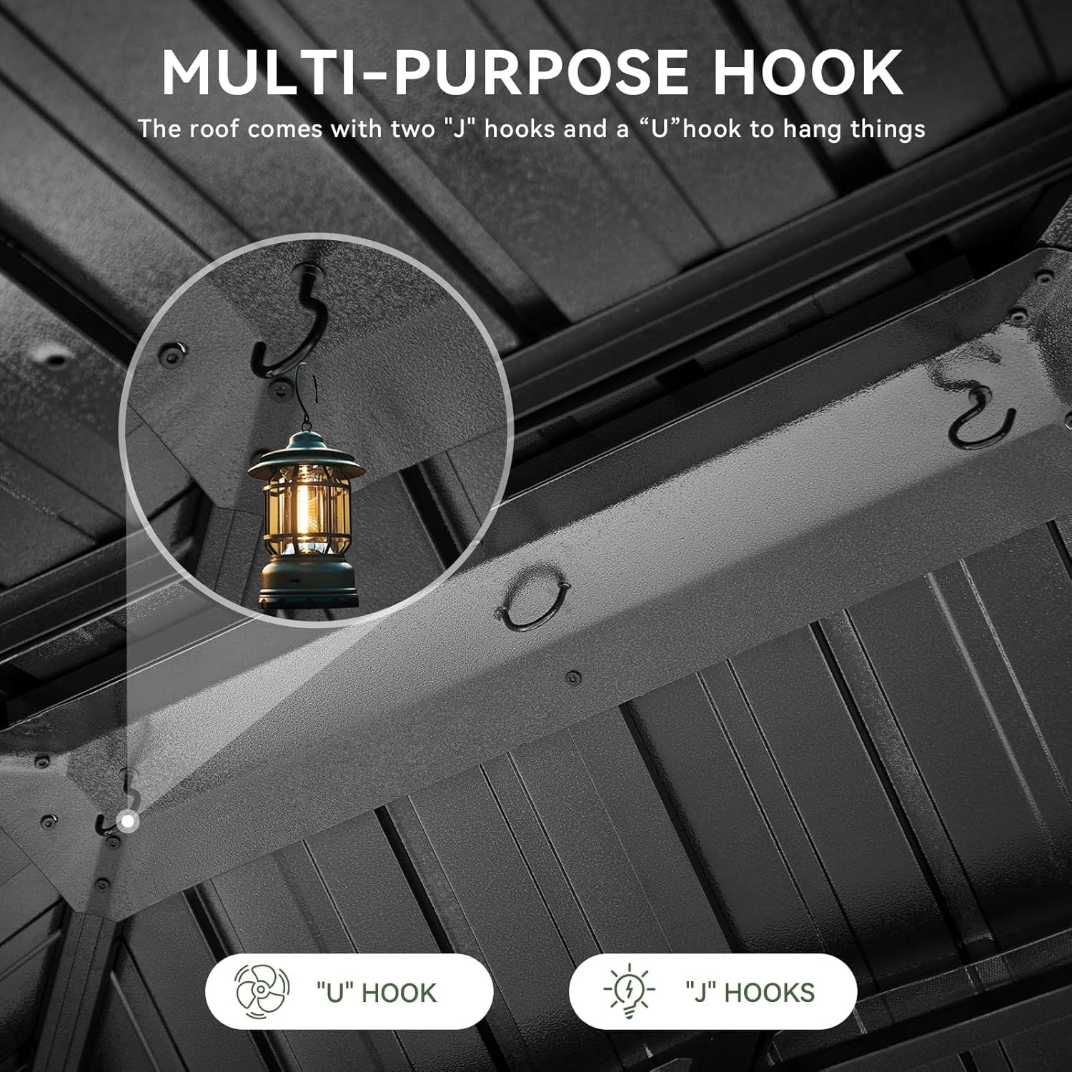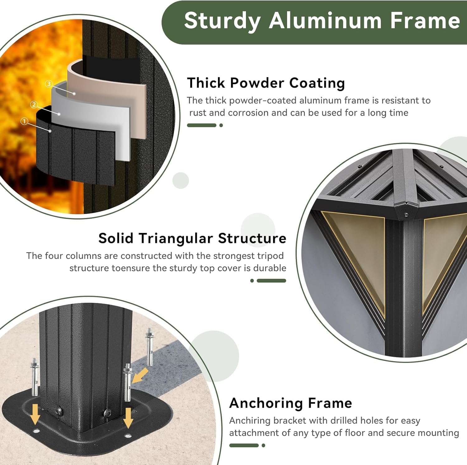 Aoxun Hardtop Gazebo 10x12, Aluminum Frame Canopy with Double Galvanized Steel Roof, Outdoor Gazebo with Breathable Netting and Privacy Curtain for Backyard