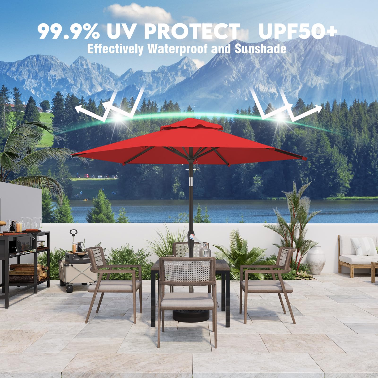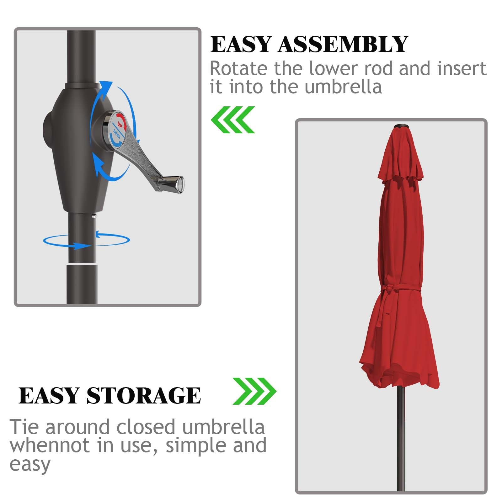 AreShark 7.5FT Patio Umbrella Table Market Umbrella w/Tilt and Crank Heavy-Duty Round Outdoor Umbrellas for Garden, Deck, Backyard, Pool and Beach, Red