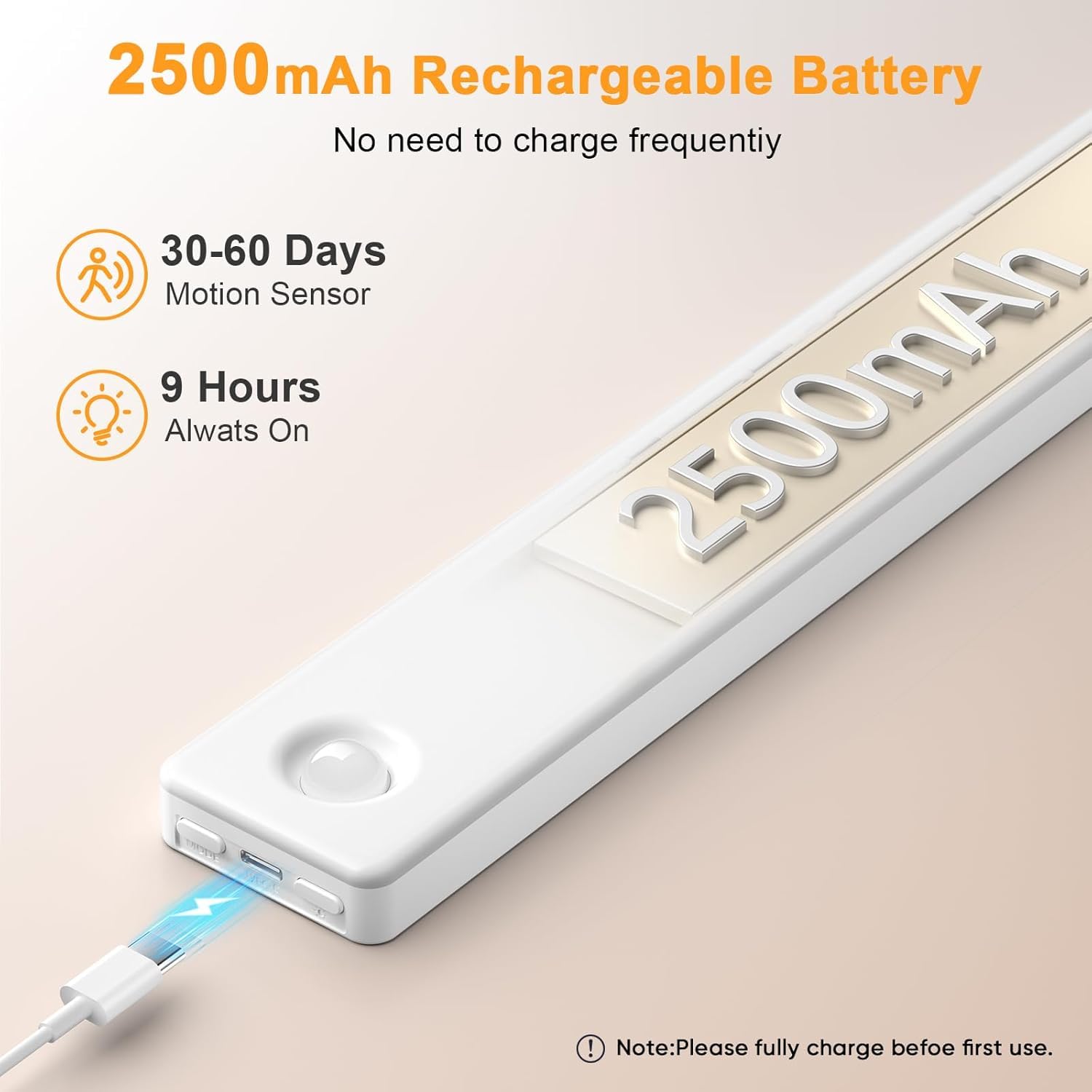 Auxoda 13 Inch Wireless Motion Sensor Light Indoor, USB Rechargeable Battery Operated Step Light, Magnetic Stick On Lights for Stair, Step Lights Motion-Activated Auto Shut-Off (2-Pack)