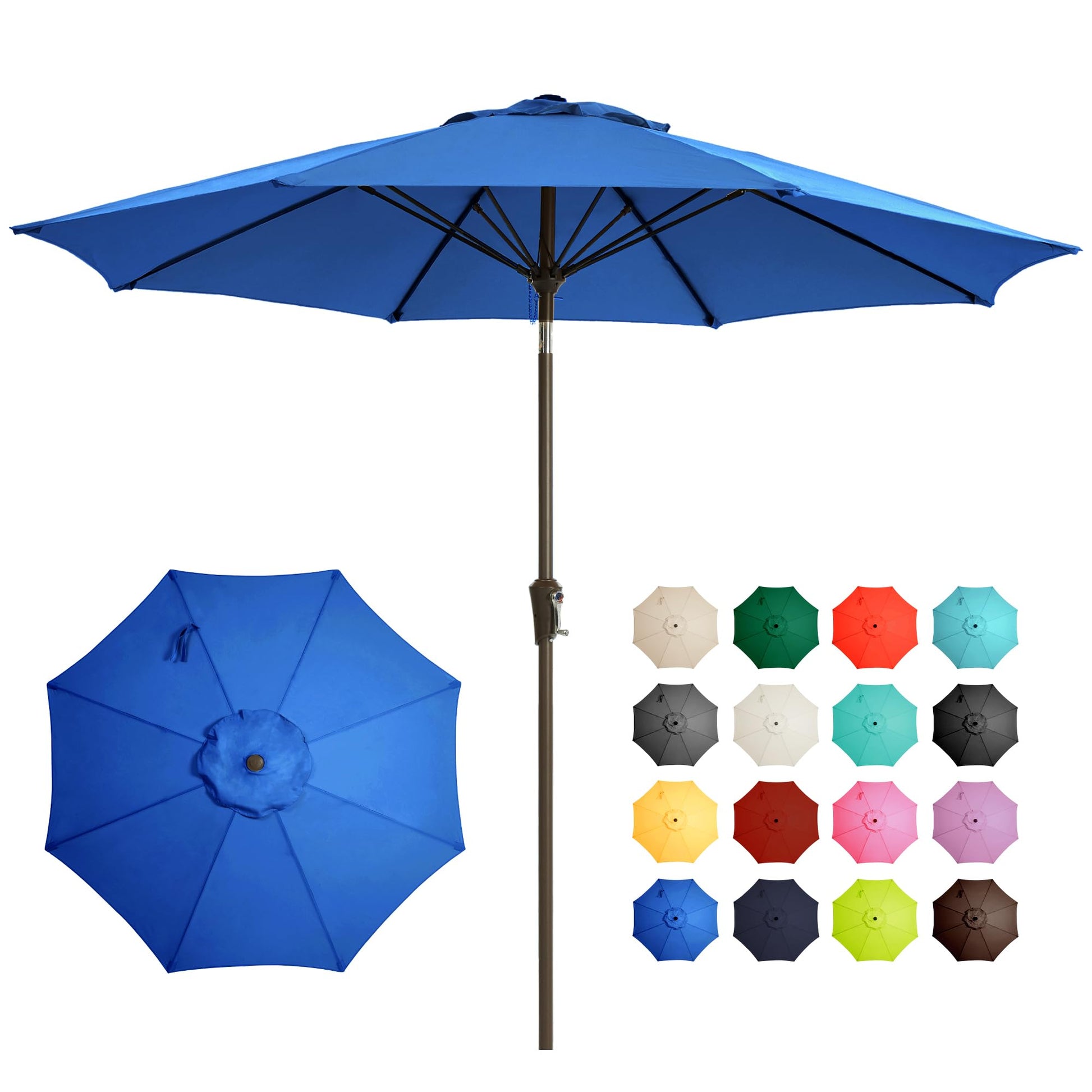Ayge 9FT Large Outdoor Patio Umbrella Market Table Umbrella-UV Resistant, Easy Push Button Tilt and Crank, 8 Sturdy Fiberglass Ribs Heavy-Duty Pool Umbrella for Deck, Backyard,Garden, Yard,Blue