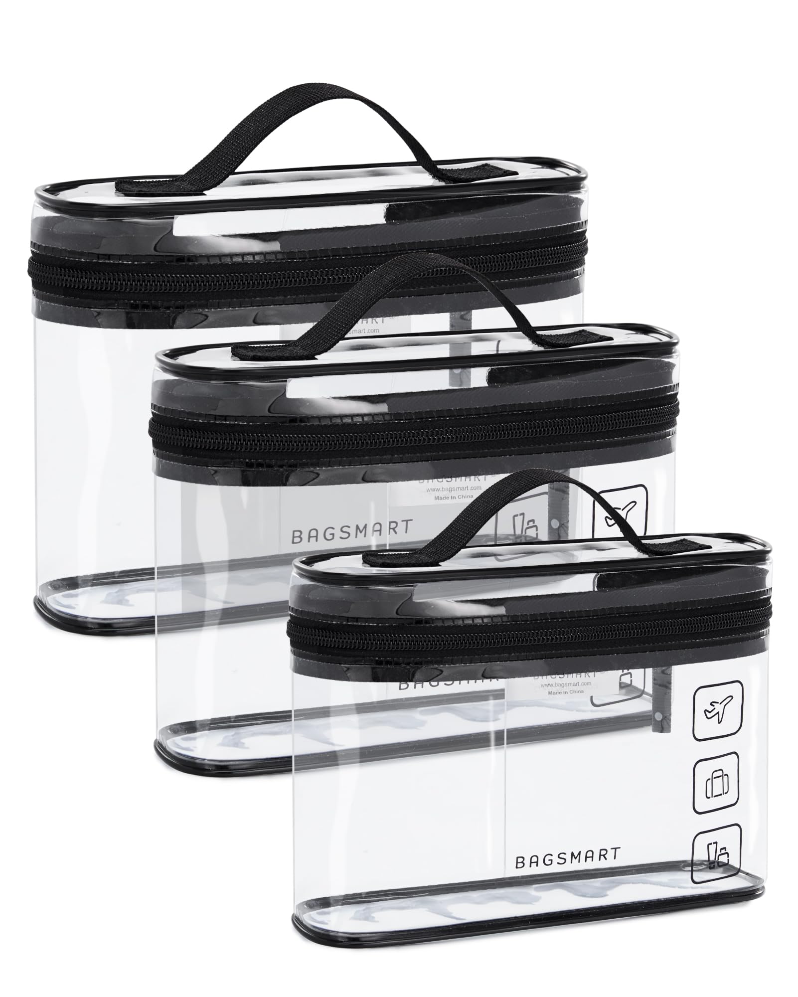 BAGSMART TSA Approved Toiletry Bag, 3 Pack Clear Makeup Cosmetic Bag Organizer, Quart Size Travel Bag for Toiletries, Carry-on Travel Accessories Essentials, Black-3pcs