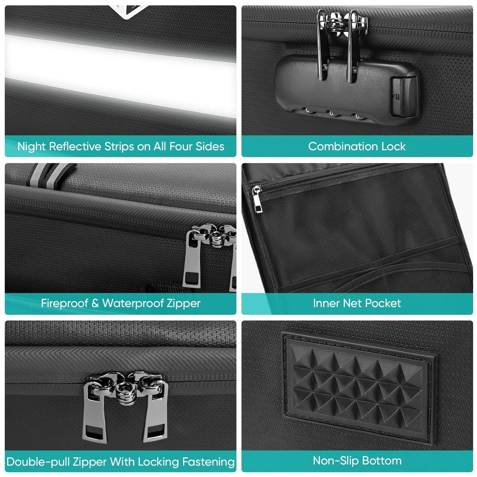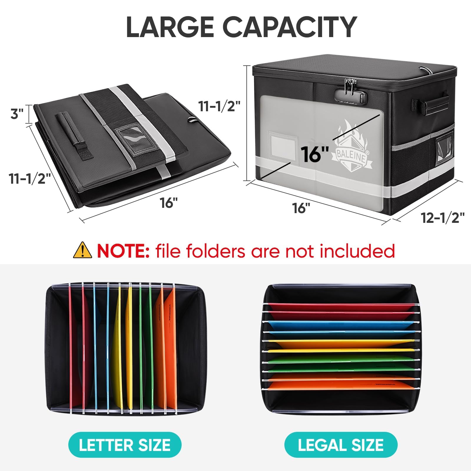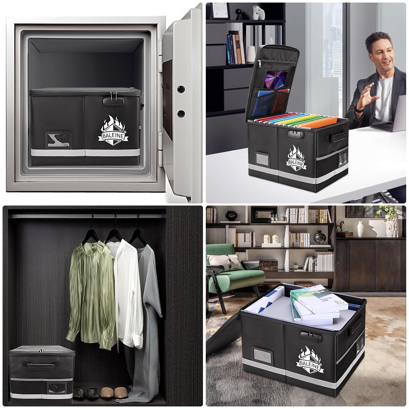 BALEINE Fireproof Document Box with Lock, Portable Fireproof Document Bag Waterproof Fire Proof File Boxes for Documents, File Organizer Box for Important Paperwork (Silver, 16''x12.5''11.5'')