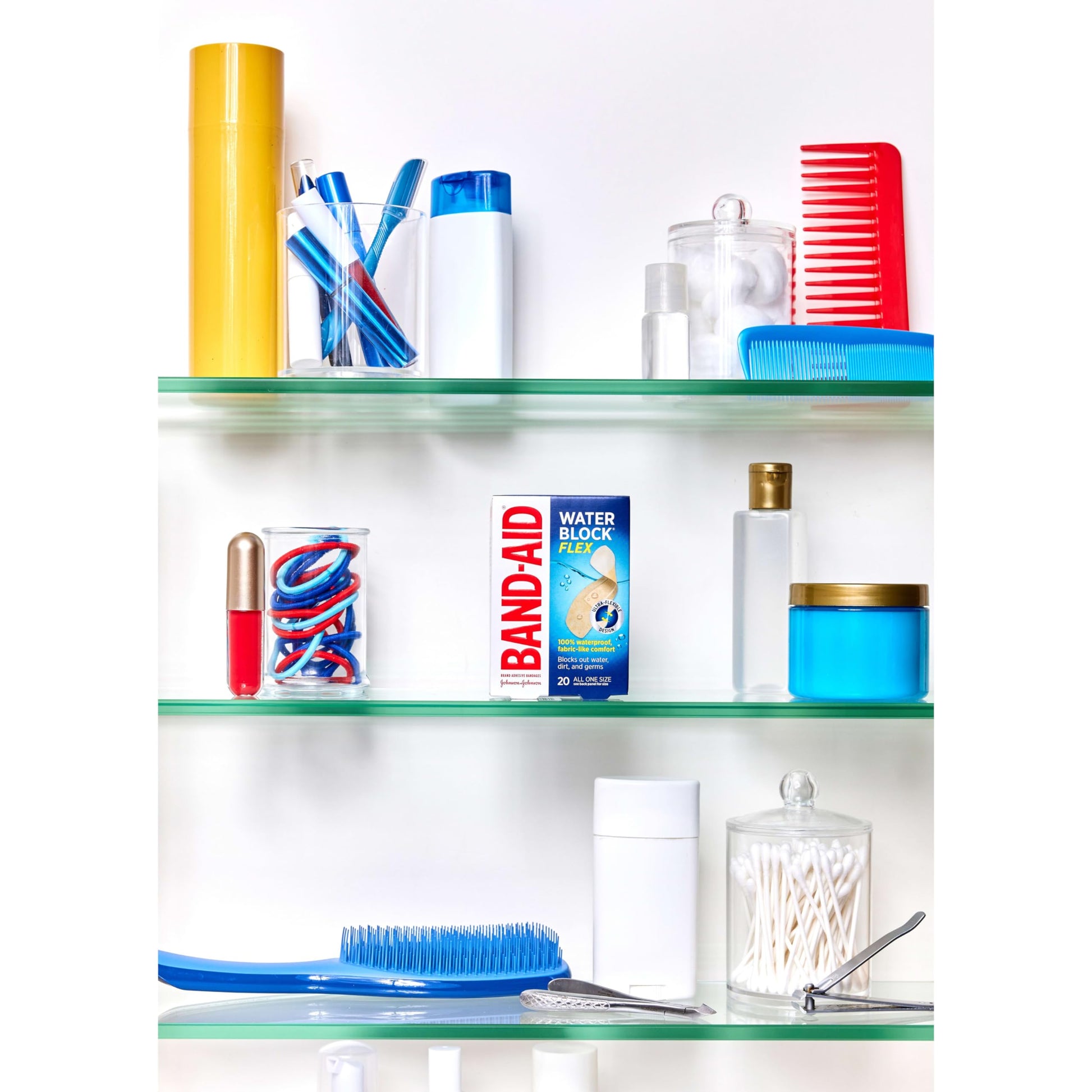 Band-Aid Brand Water Block Flex 100% Waterproof Adhesive Bandages for First-Aid Wound Care of Minor Cuts, Scrapes & Wounds, Ultra-Flexible Design, Sterile, All One Size, 20 ct