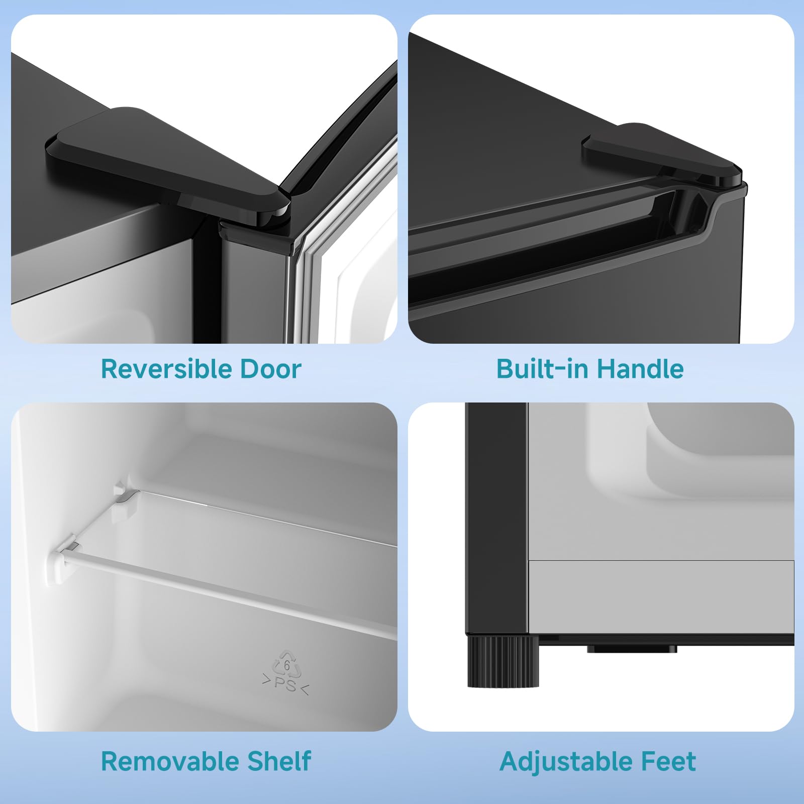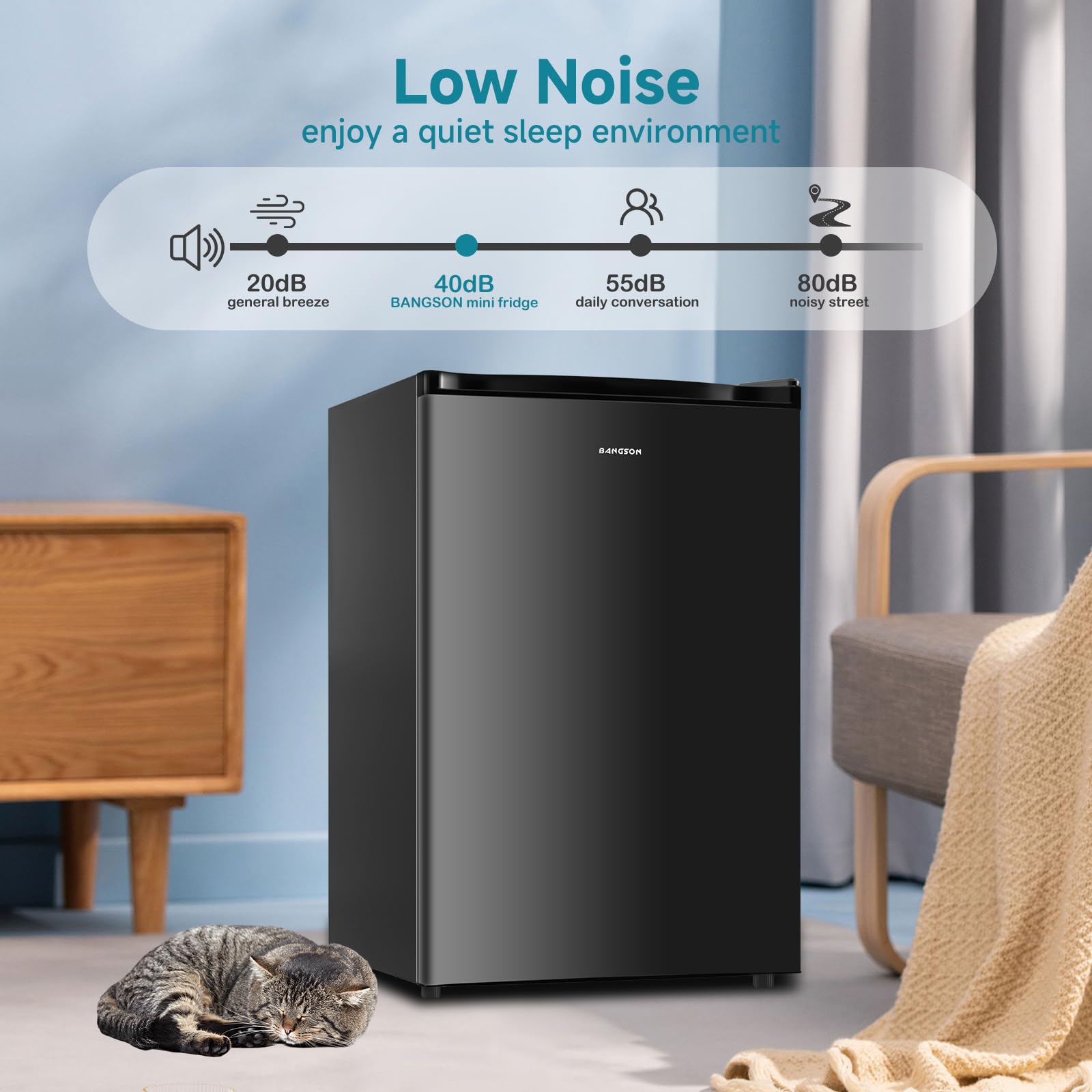 BANGSON 3.0 Cu.ft Compact Upright Freezer, Energy-Saving Mini Freezer with Adjustable Thermostat, Removable Shelves, Reversible Black Door, Ideal for Garage/Dorm/Office/Apartment, Black