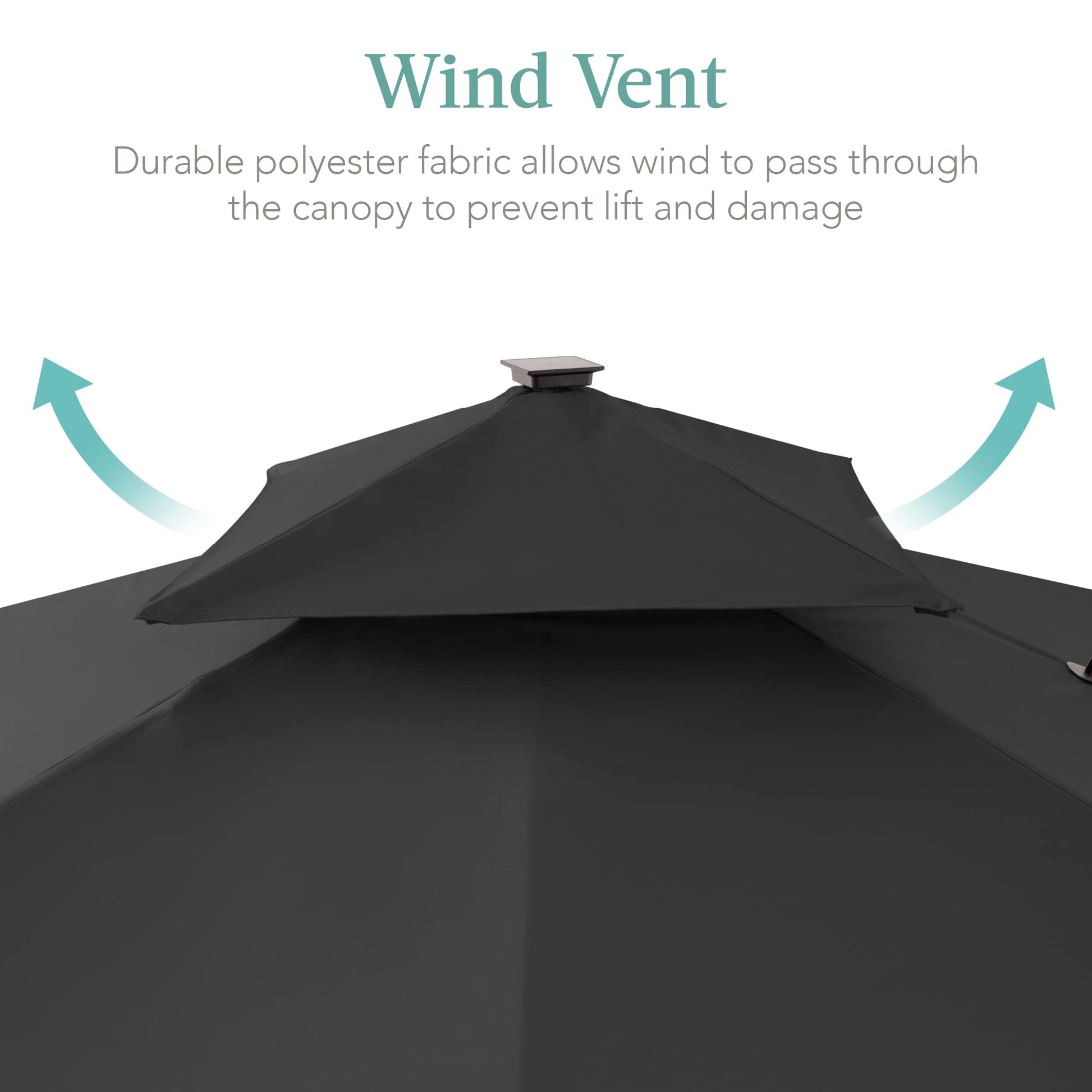 Best Choice Products 10x10ft Cantilever Patio Umbrella w/Base Included, Solar LED Lights 360 Rotation Large Offset Hanging Outdoor Shade for Deck Pool Backyard w/Stand – Gray