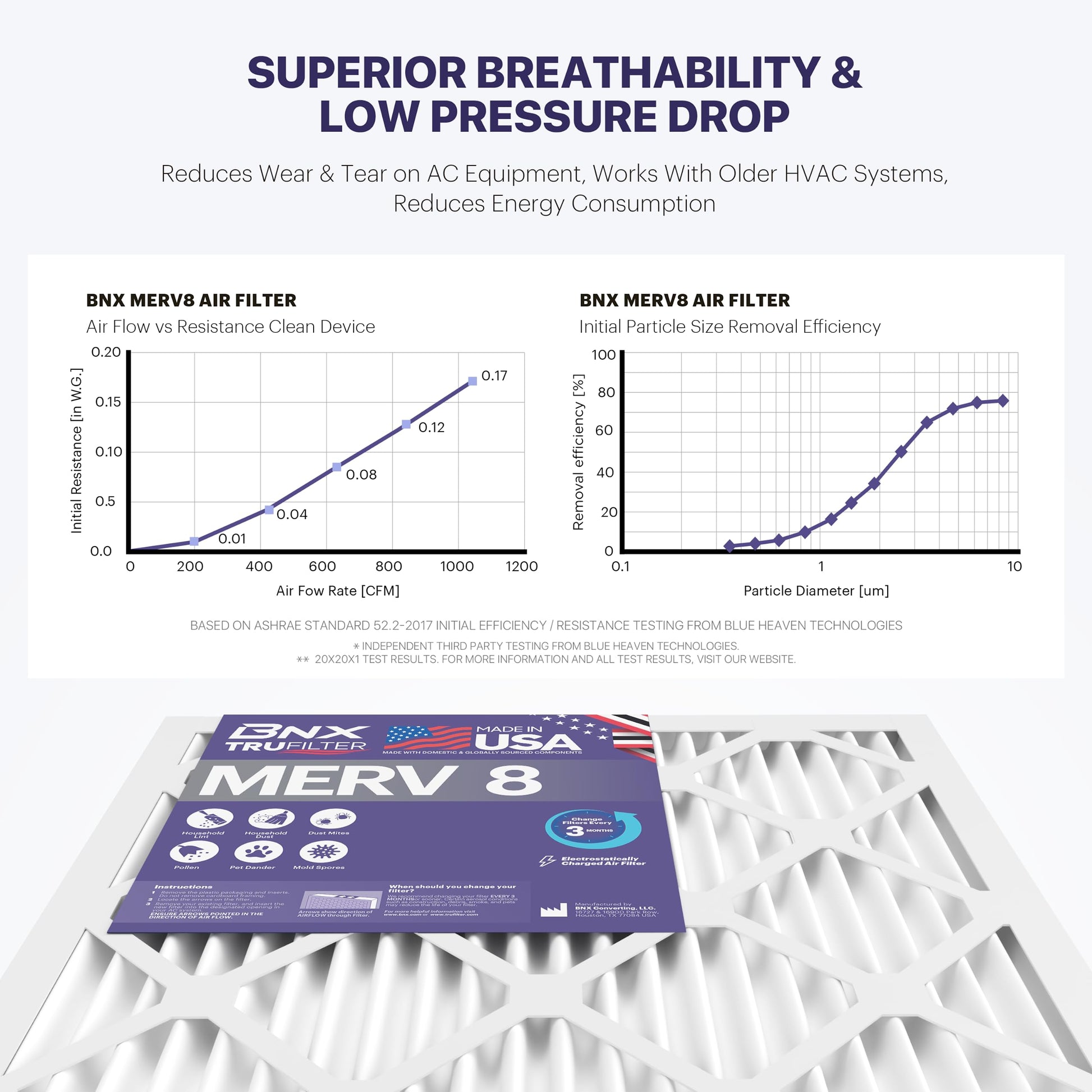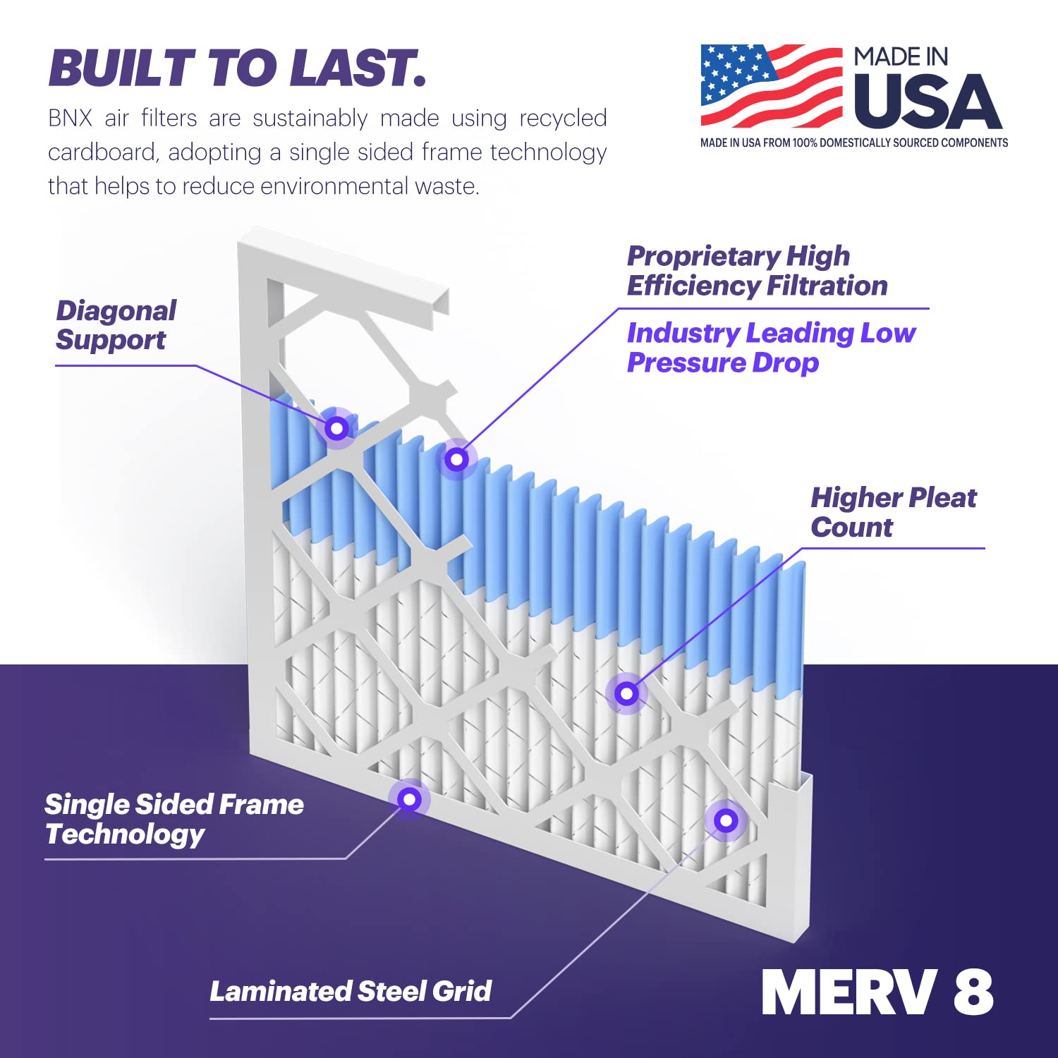 BNX TruFilter 20x20x1 Air Filter MERV 8 (6-Pack) - MADE IN USA – Dust & Pet Defense Electrostatic Pleated Air Conditioner HVAC AC Furnace Filters for Dust, Pet, Mold, Pollen MPR 600 – 700 & FPR 5