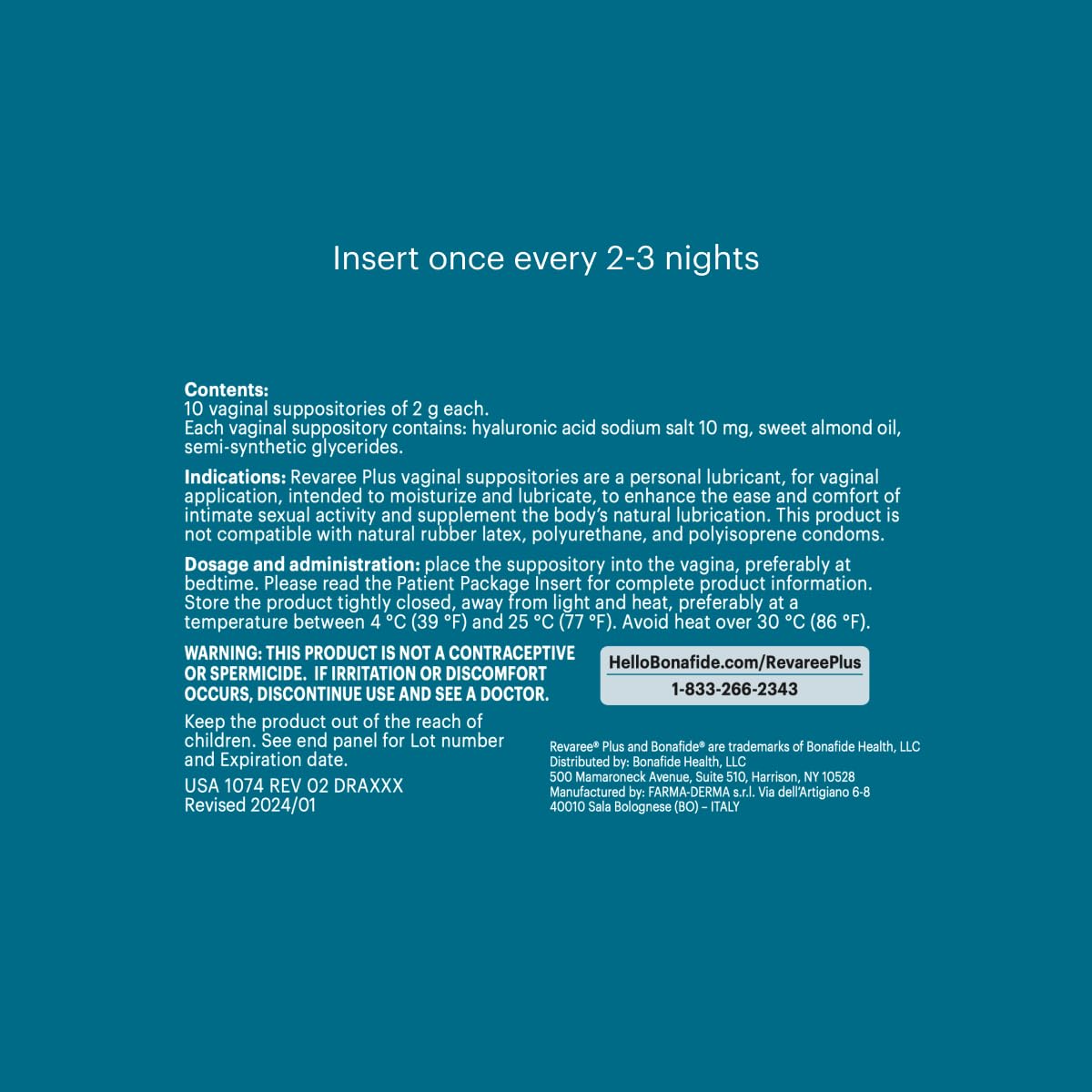 Bonafide Revaree Plus Vaginal Moisturizer with 10mg Hyaluronic Acid & Soothing Sweet Almond Oil. — 3-Month Supply (30 Inserts)