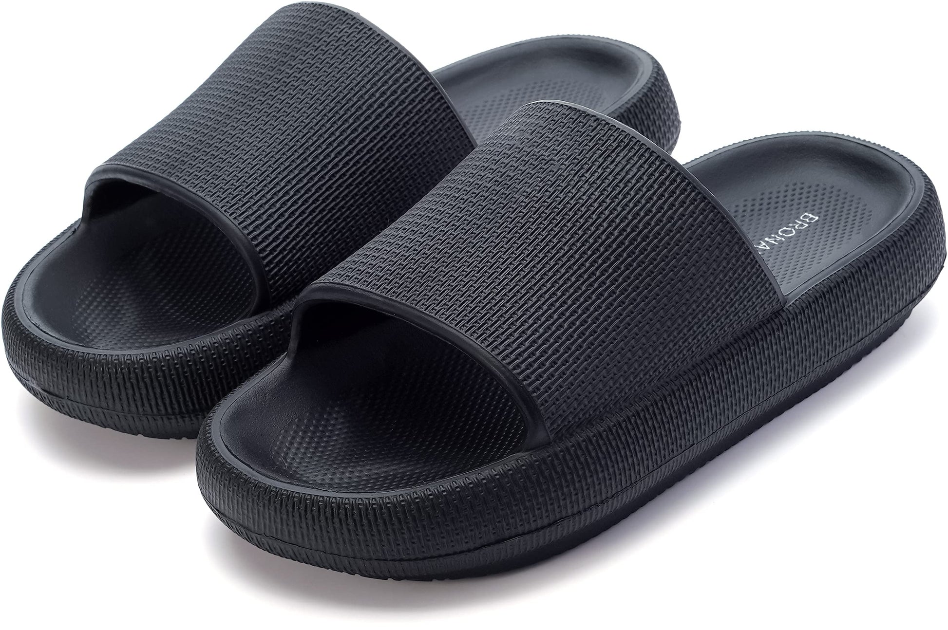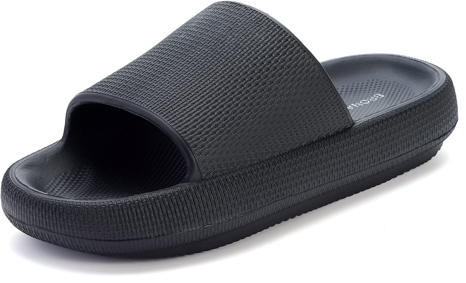 BRONAX Slides for Women Pillow Slippers Open Toe House Shoes Sandals for Ladies Indoor Comfy Soft Cushioned Thick Sole 37-38 Black
