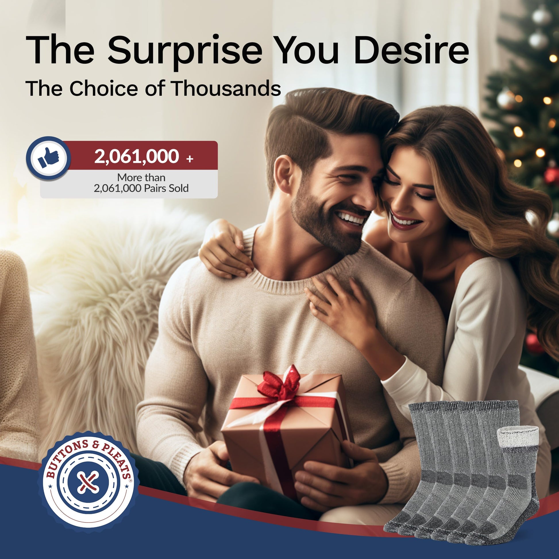 Buttons & Pleats Wool Socks for Men Women Merino Thermal Warm Cozy Winter Fuzzy Boot Sock Charcoal ML