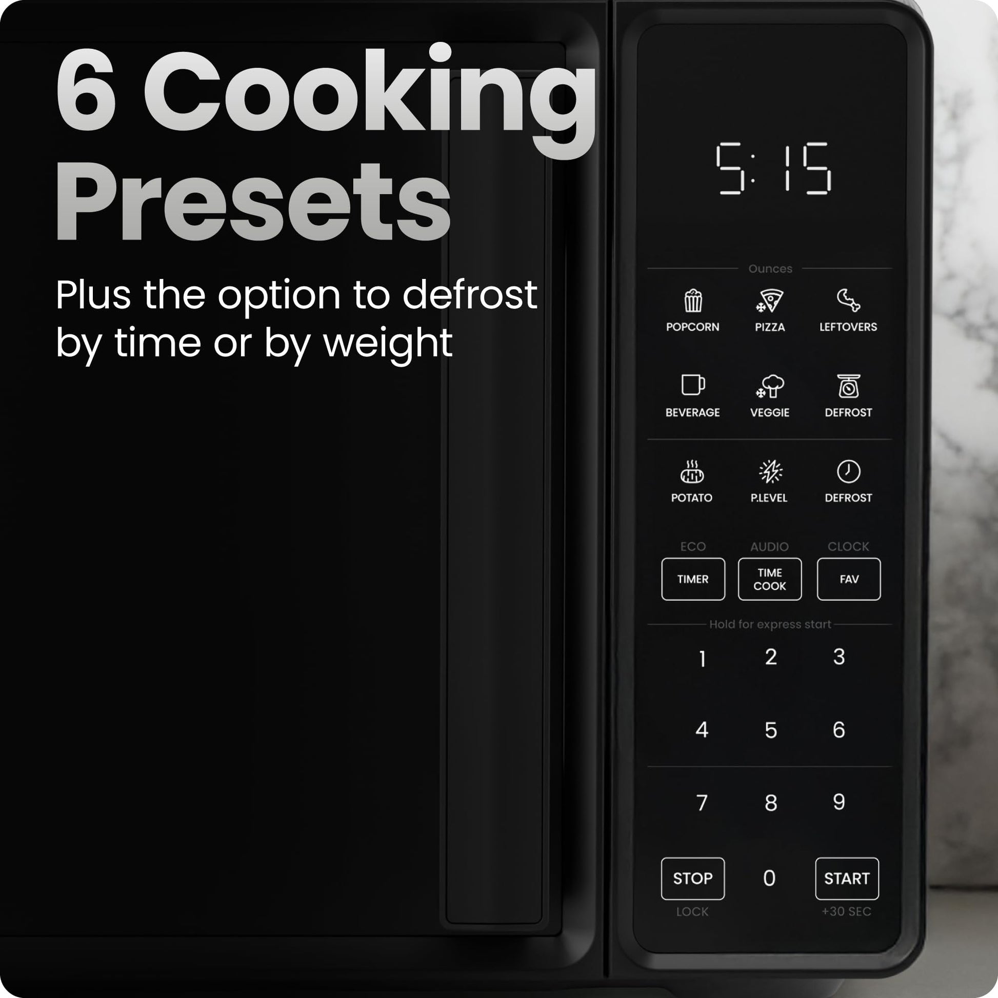 Chefman Countertop Microwave Oven 0.7 Cu. Ft., 700 Watts with 10 Power Levels, 6 Cooking Presets with One-Touch Express Cook, Eco Mode, Child Safety Lock, & Mute Button - Black