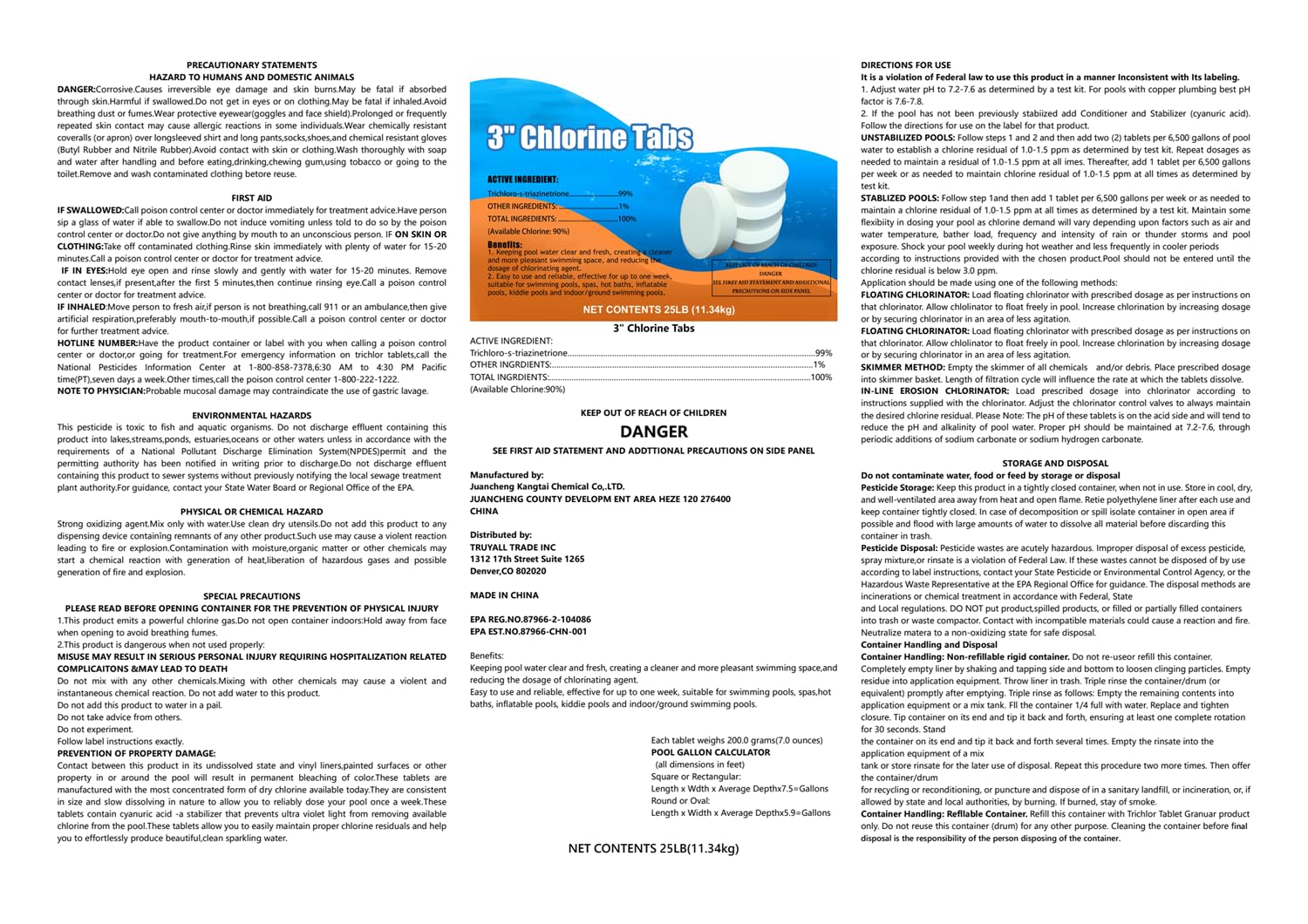 Chlorine Tablets 3 inch 25 Pounds, TABIT Swimming Pool Long Lasting Chlorinating Tablets, Slow Dissolving, Tri-Chlor for Swim Pool, Hot Tubs, Spa
