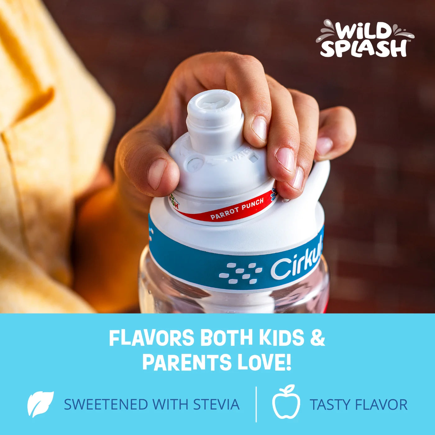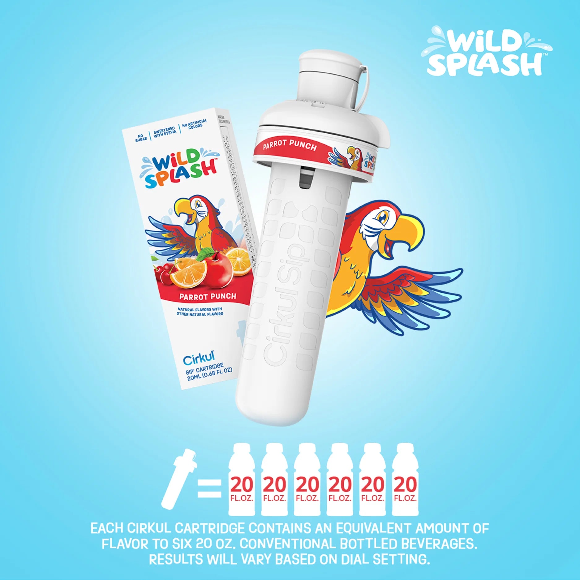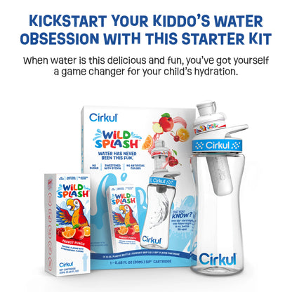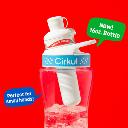 Cirkul 16oz Plastic Water Bottle Starter Kit with Blue Lid, 1 Flavor Cartridge (Wild Splash Parrot Punch)