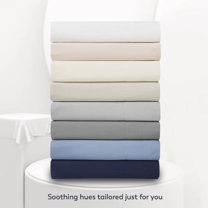 Color Sense 100% Cotton Percale Cool & Crisp 4-Piece Sheet Set Queen White