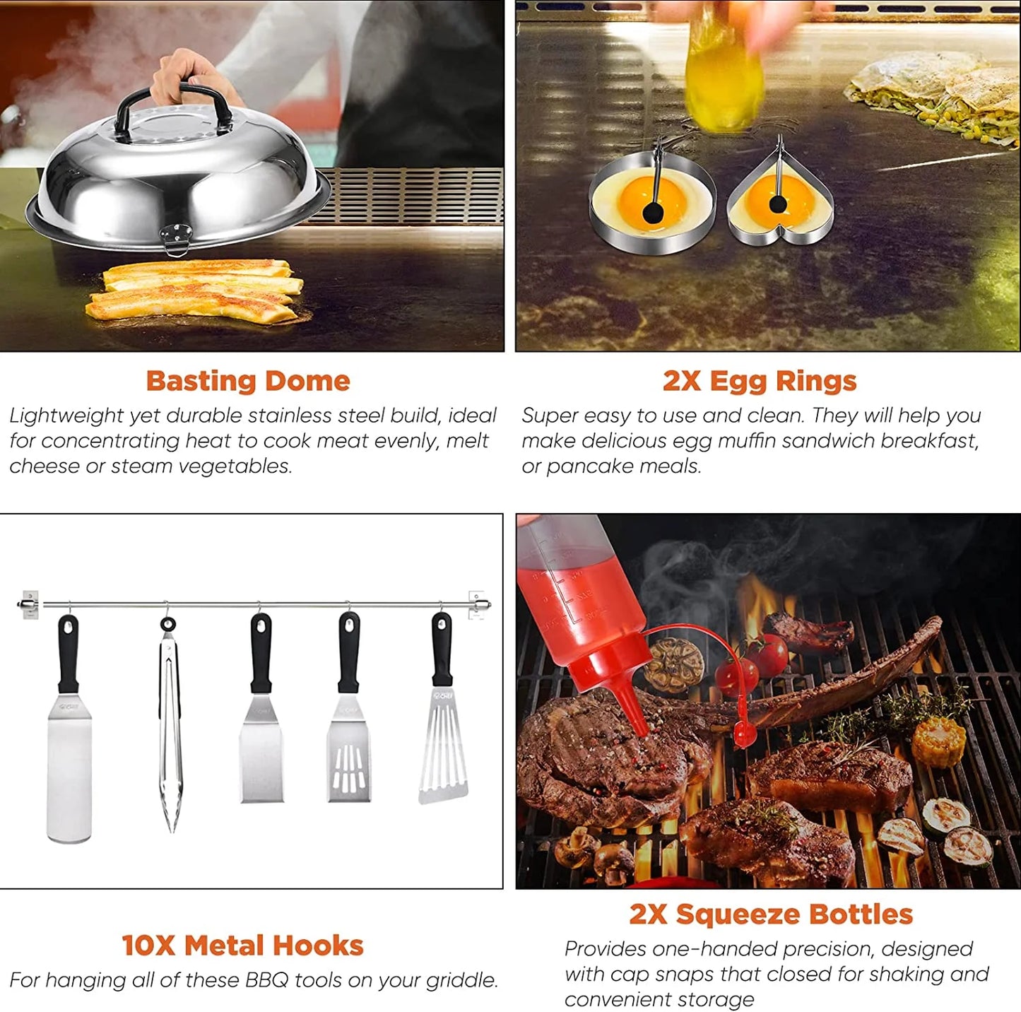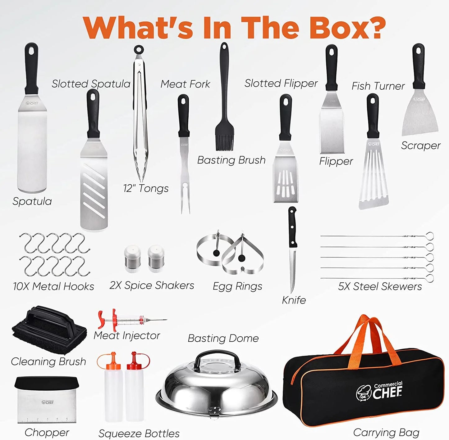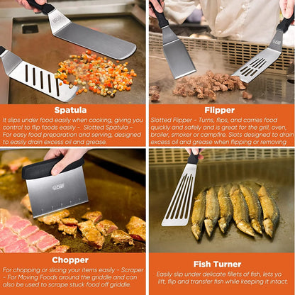 Commercial Chef 36-Piece Griddle Accessories for Blackstone, BBQ & Flat Top Grill Spatula Kit