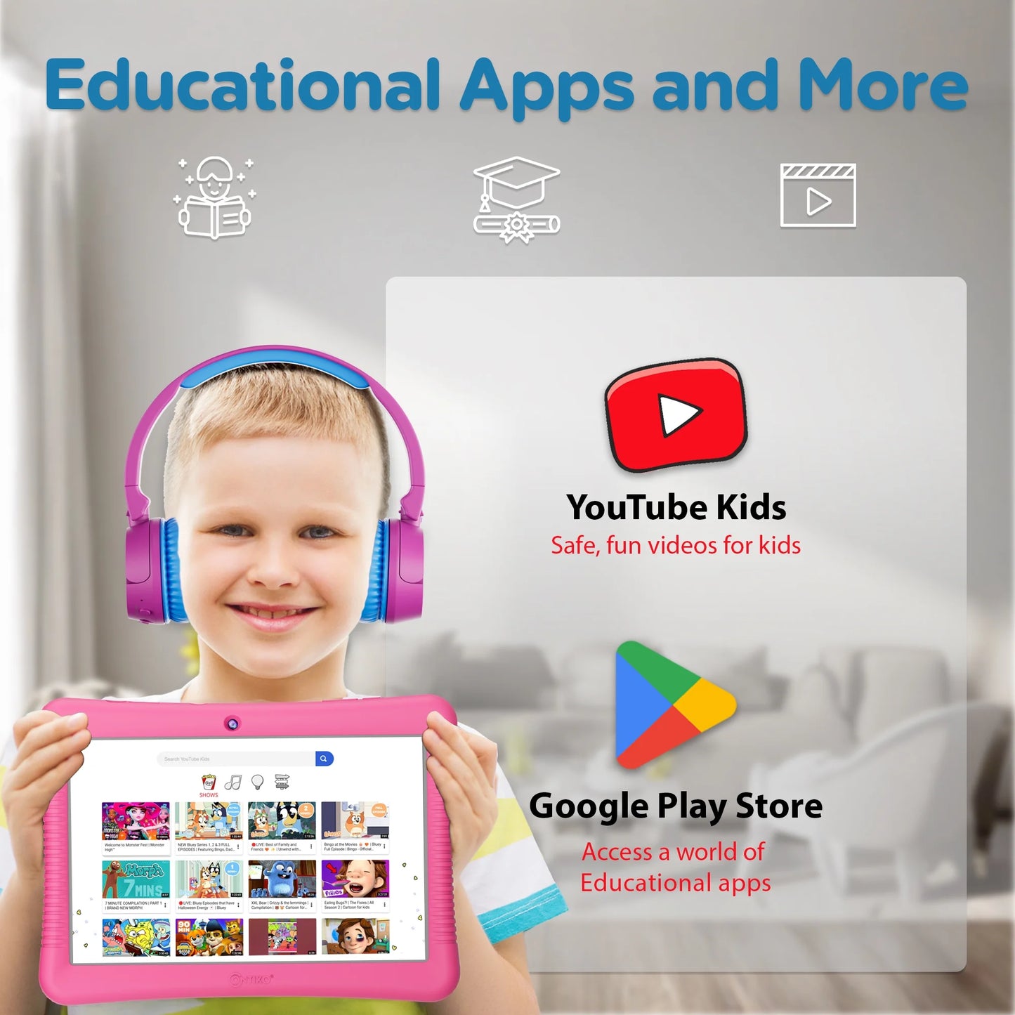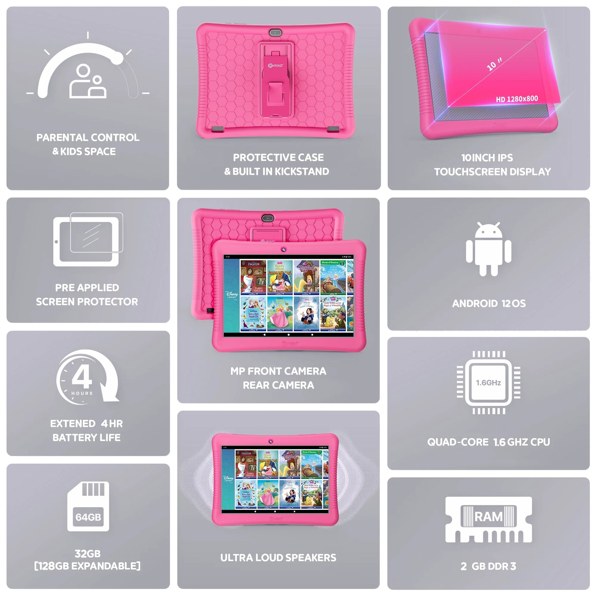 Contixo 10" Kids Tablet Bundle, 80 FREE Disney eBooks, Bluetooth Headphones, Case, Stylus, 32GB, Parental Controls, Tablet for kids 3-7 - Pink