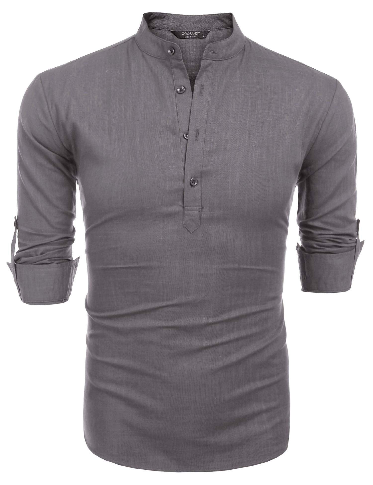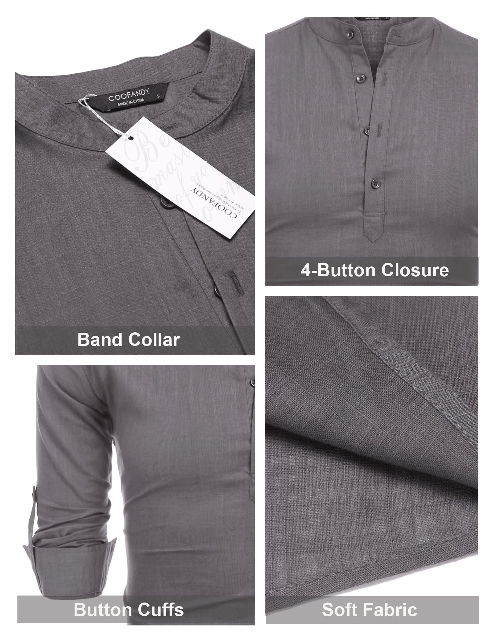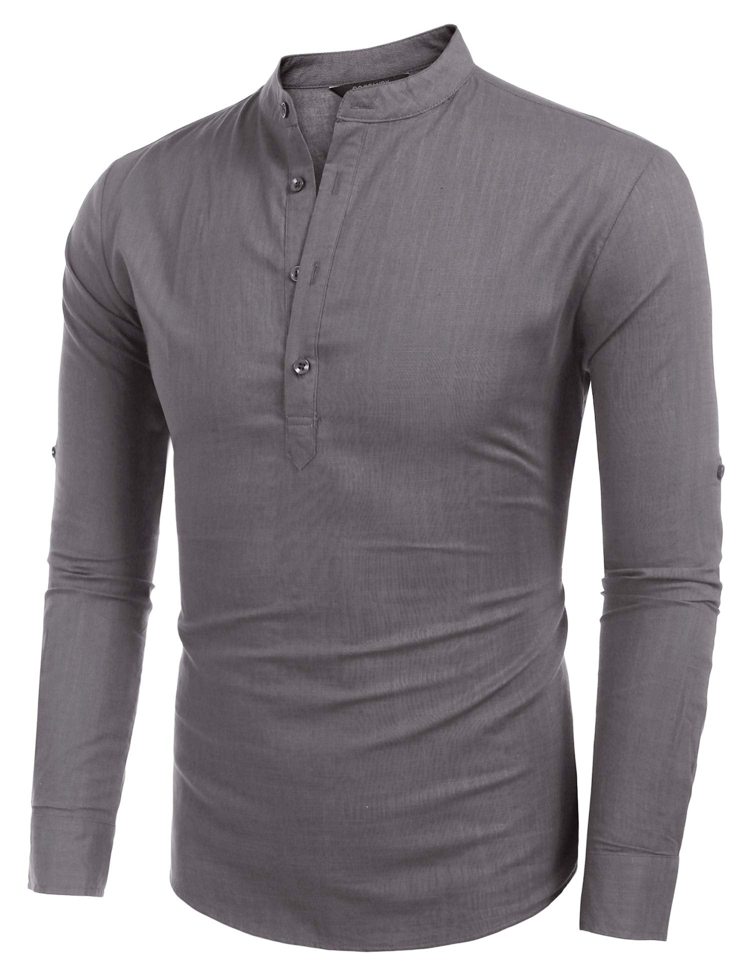COOFANDY Men's Cotton Linen Henley T-Shirts Long Sleeve Hippie Casual Beach T-Shirts Dark Gray