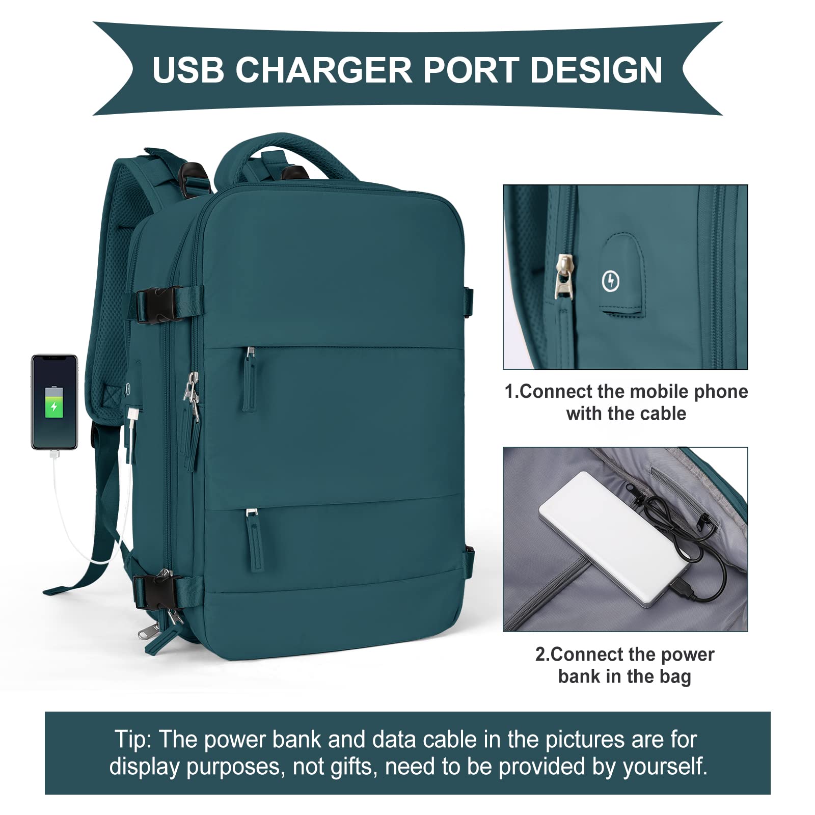 coowoz Large Travel Backpack For Women Men,Carry On Flight Approved,Hiking Waterproof Outdoor Sports Rucksack Casual Daypack Fit 15.6 Inch Laptop Shoes Compartment (Peacock Blue)