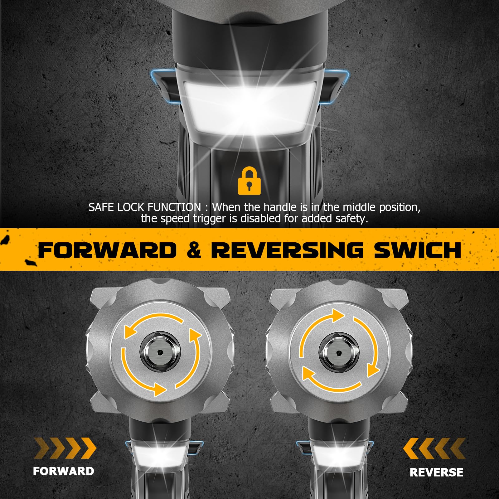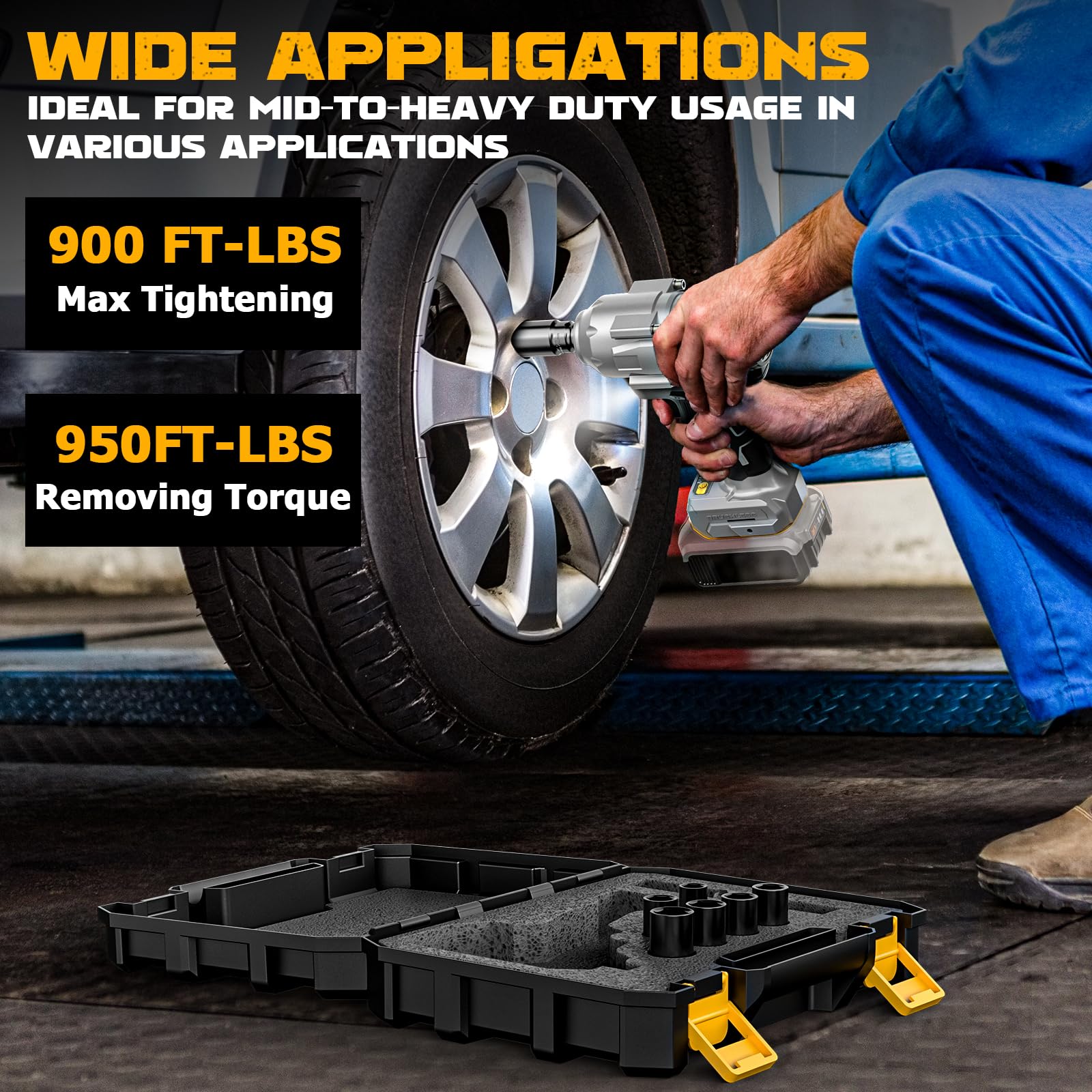 Cordless Impact Wrench 1/2 inch for Dewalt Battery 900FT-LBS with 6 Sockets and Durable Toolbox Brushless Impact Gun Includes LED Work Light (950Ft-lbs Wrench with 6 Sockets)