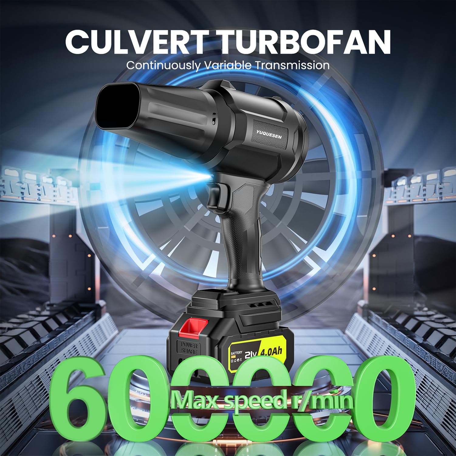 Cordless Leaf Blower, 600000RPM Handheld Leaf Blower with 2 X 4.0Ah Batteries & Charger, Lightweight Leaf Blowers for Patio Cleaning, Lawn Care, Leaves, Dust