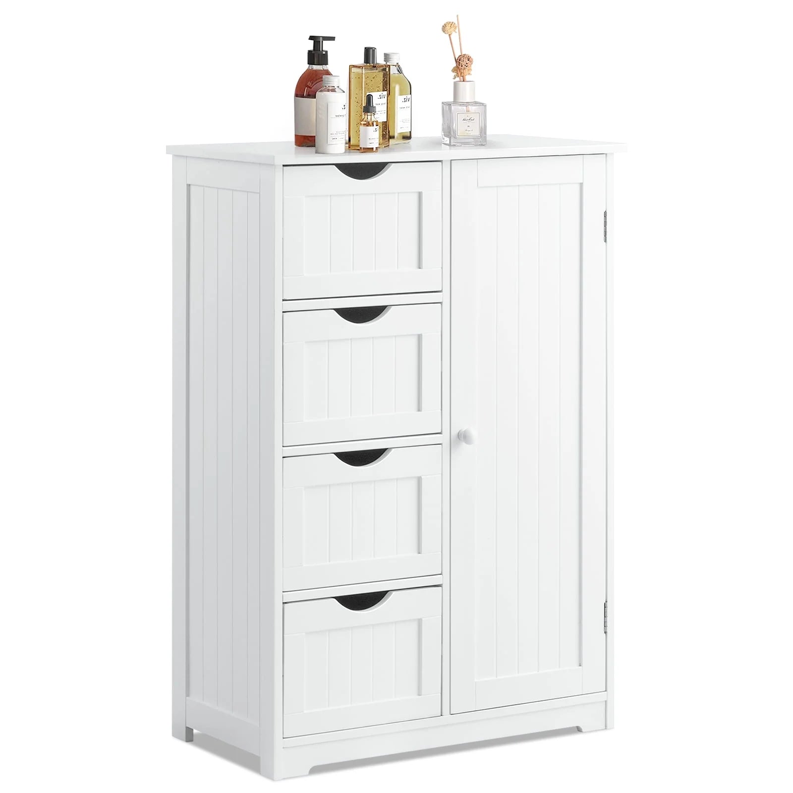 Costway Bathroom Storage Wooden 4 Drawer Cabinet Cupboard 2 Shelves Free Standing White