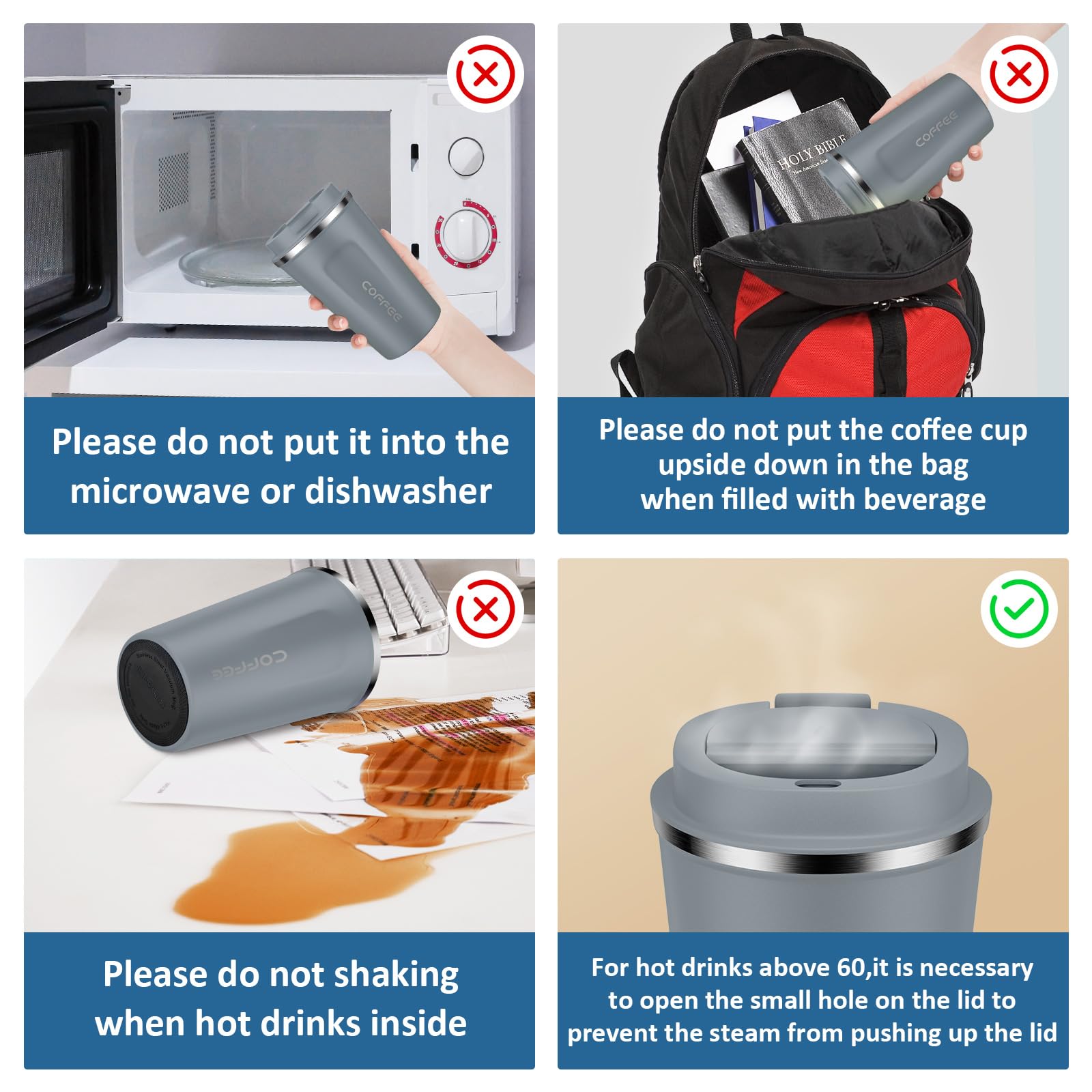 CS COSDDI 12 oz Stainless Steel Vacuum Insulated Tumbler - Coffee Travel Mug Spill Proof with Lid - Coffee Cups for Keep Hot/Ice Coffee,Tea and Beer