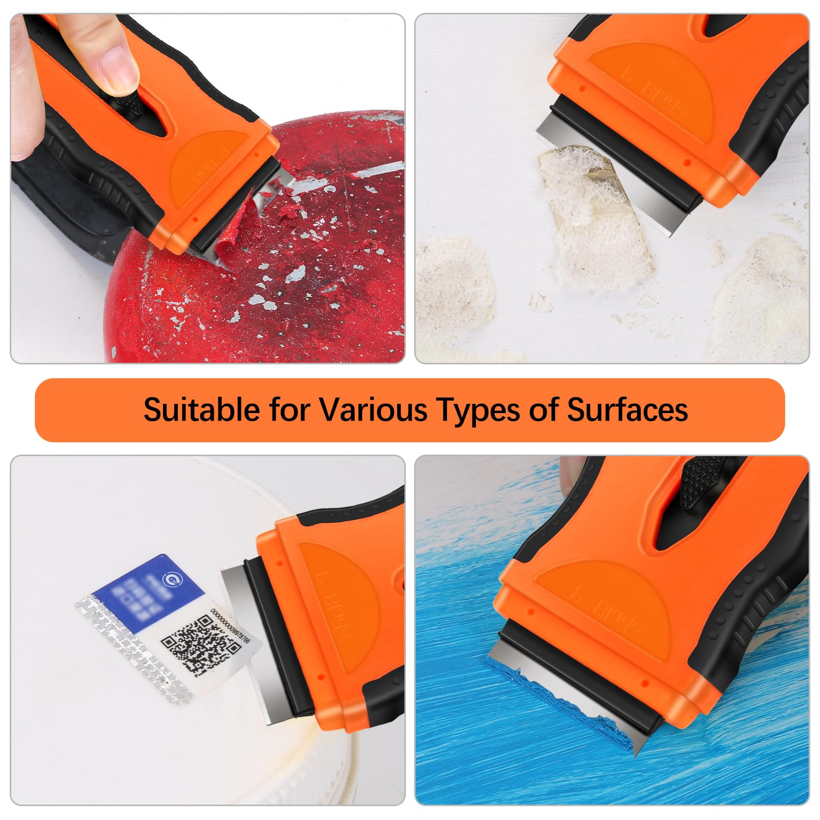 DEKEones Razor Blade Scraper, 2 Pack 2-in-1 Retractable Double-ended Razor Scraper Tool with 20PCS Plastic and Metal Razor Blades, Multi-Purpose Scraping Tool for Cleanning Cooktop, Oven (Orange)