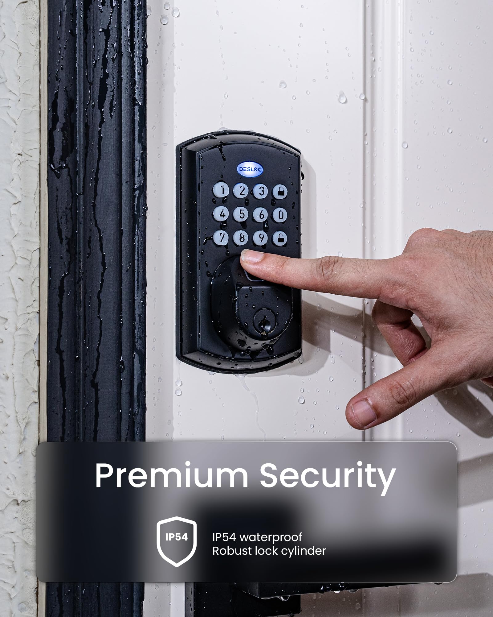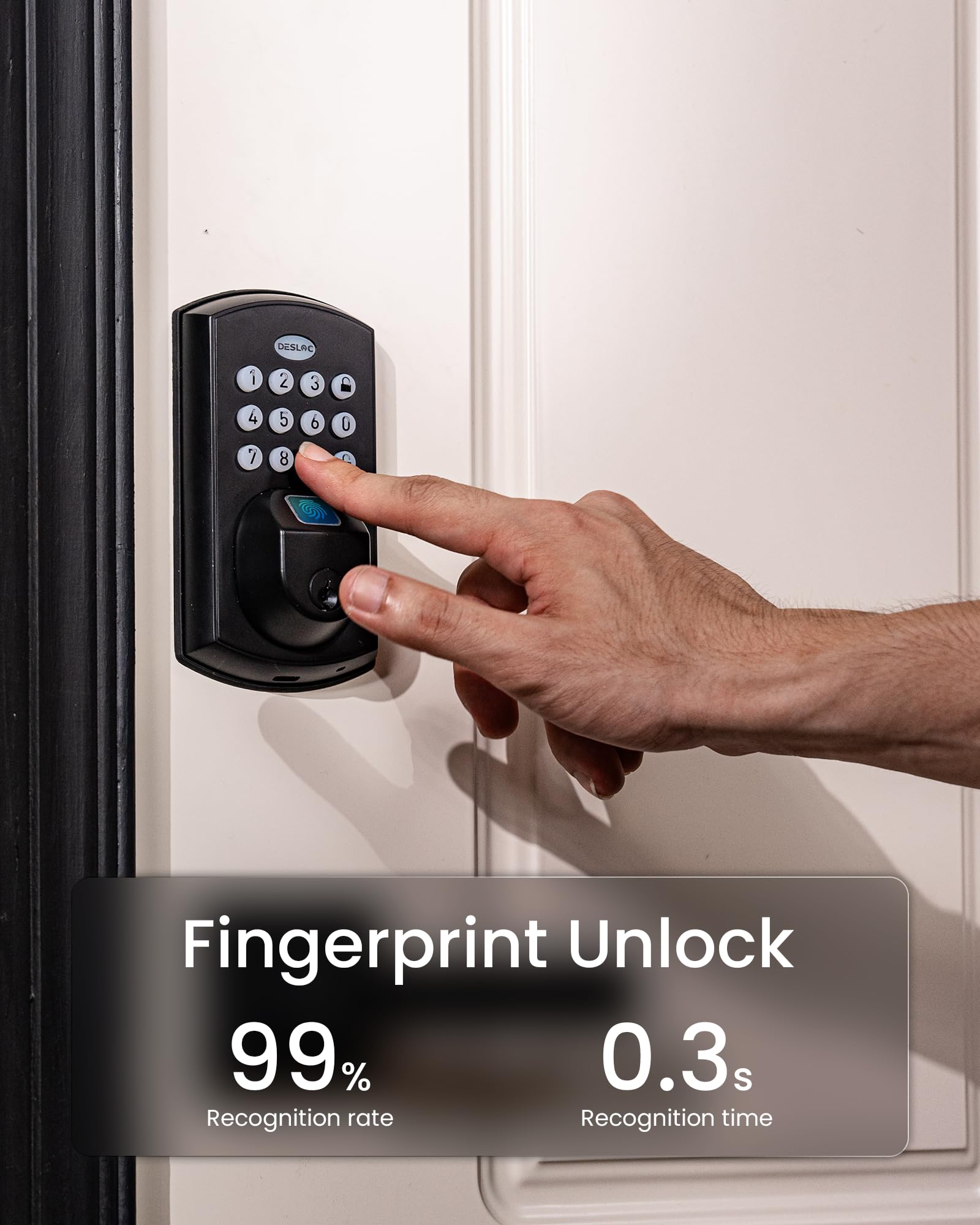 DESLOC A100F Keypad Fingerprint Door Lock, Keyless Entry Door Lock, Smart Lock Deadbolt for Front Door, Easy Installation, Emergency Power Port,12 Months Battery, IP54 Waterproof, 5 Keys