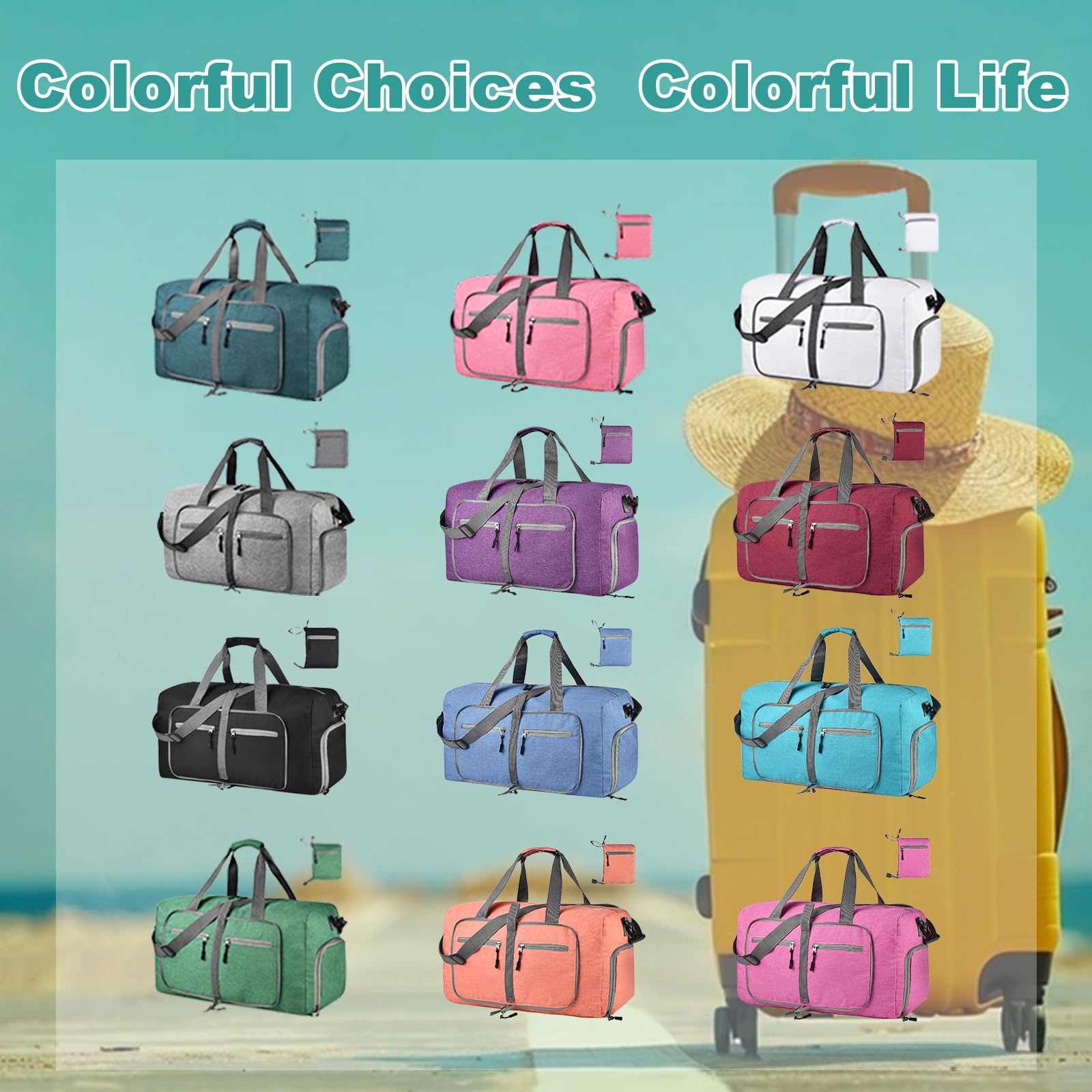 Dimayar 65L Travel Duffle Bag for Men Women - Foldable Duffel Bag with Shoes Compartment - Overnight Bags Waterproof & Tear Resistant(Forest Green)