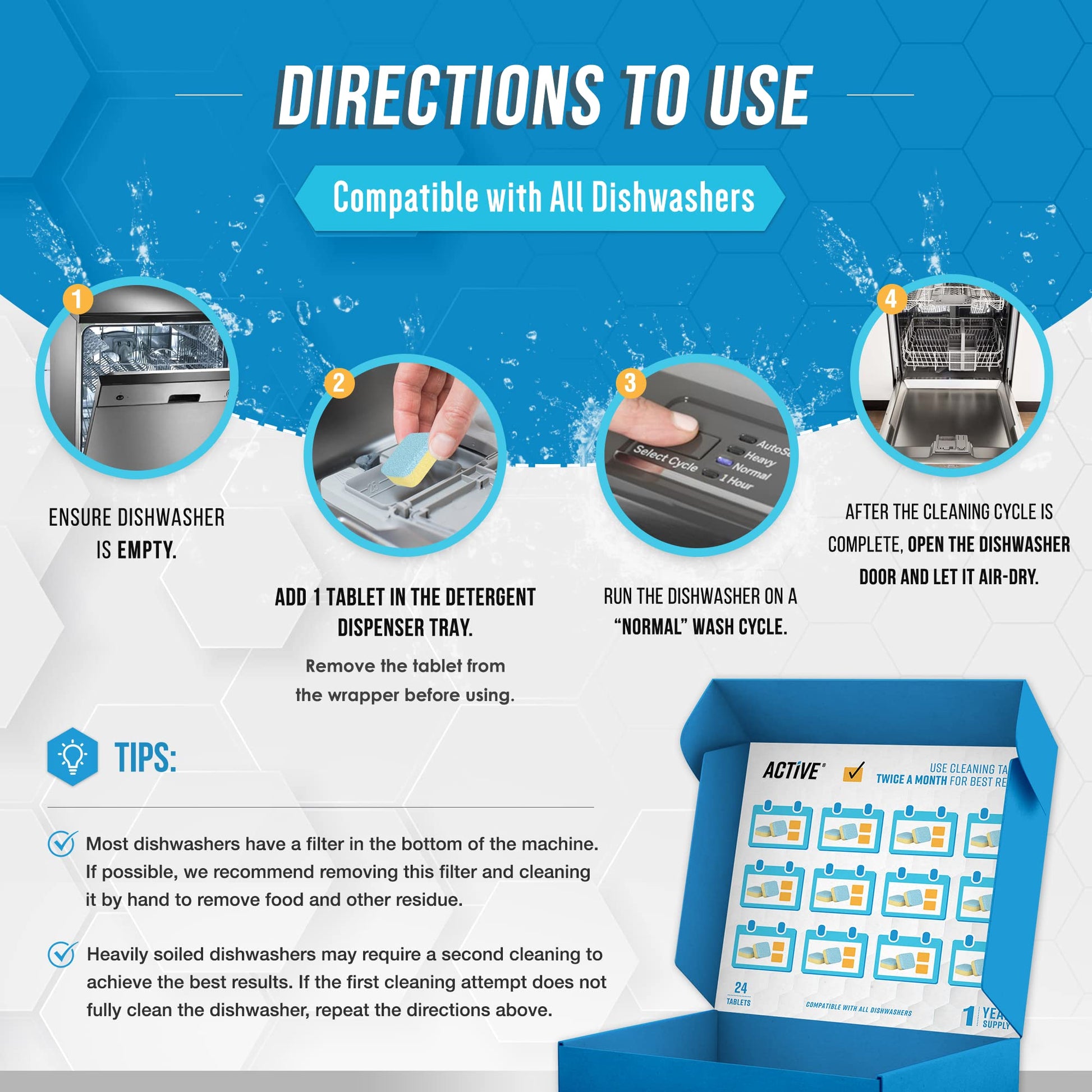 Dishwasher Cleaner And Deodorizer Tablets - 24 Pack Deep Cleaning Descaler Pods for Dish Washer Machine, Heavy Duty, Septic Safe, Natural Limescale Remover, Calcium, Odor, Smell - 12 Month Supply